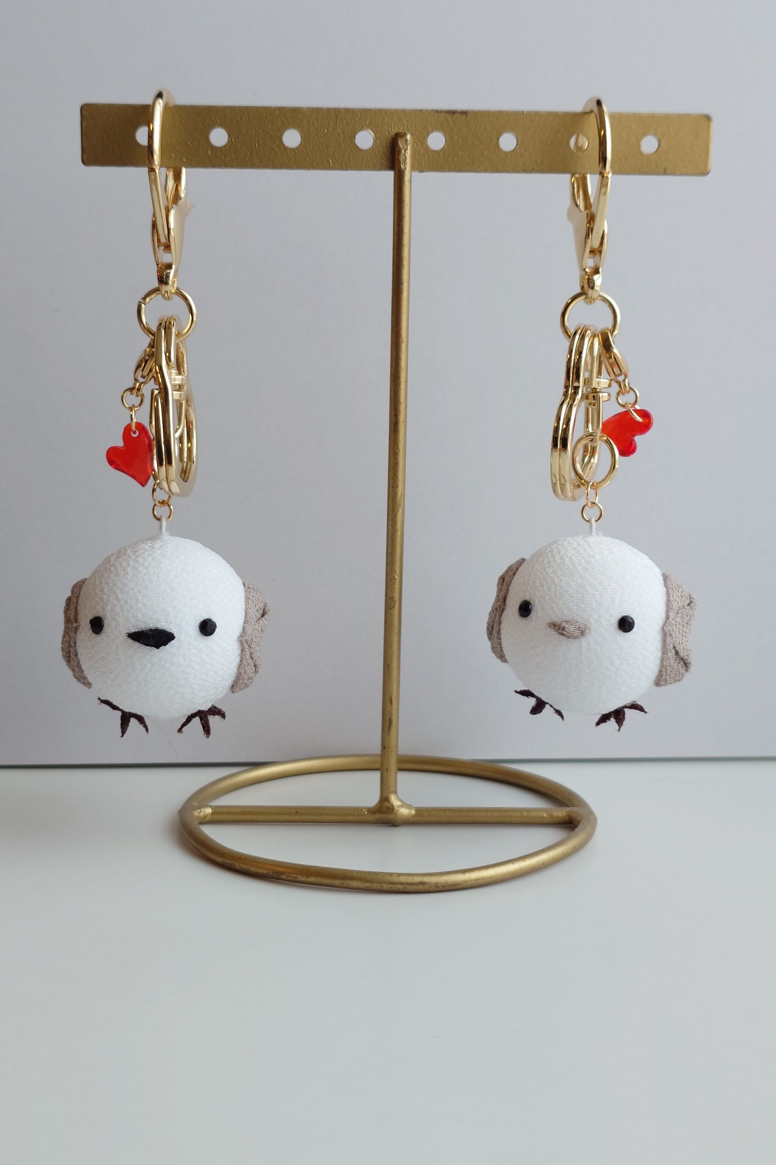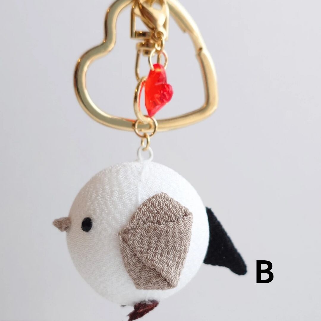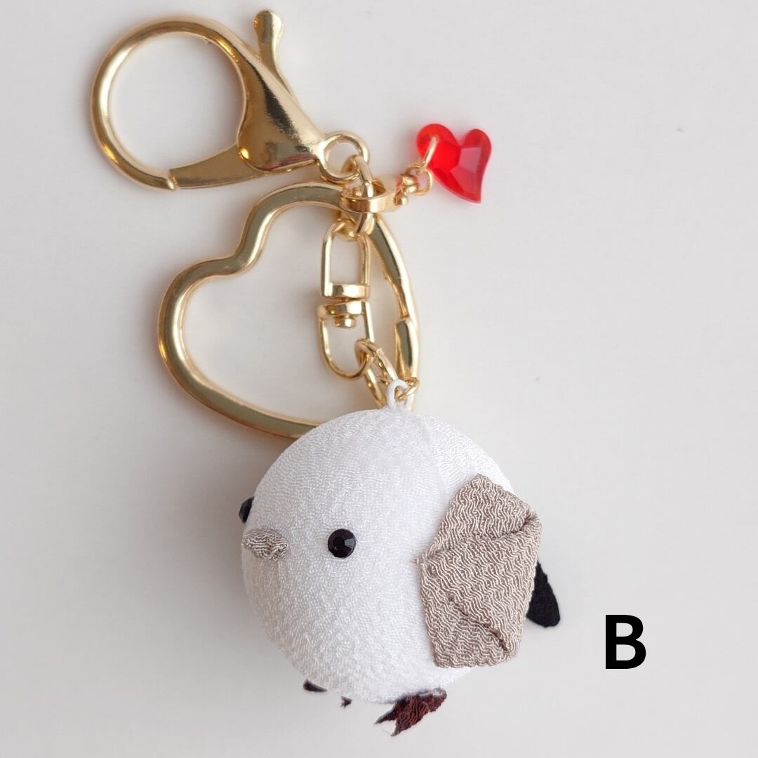 つまみ細工のシマエナガ キーホルダー ハート