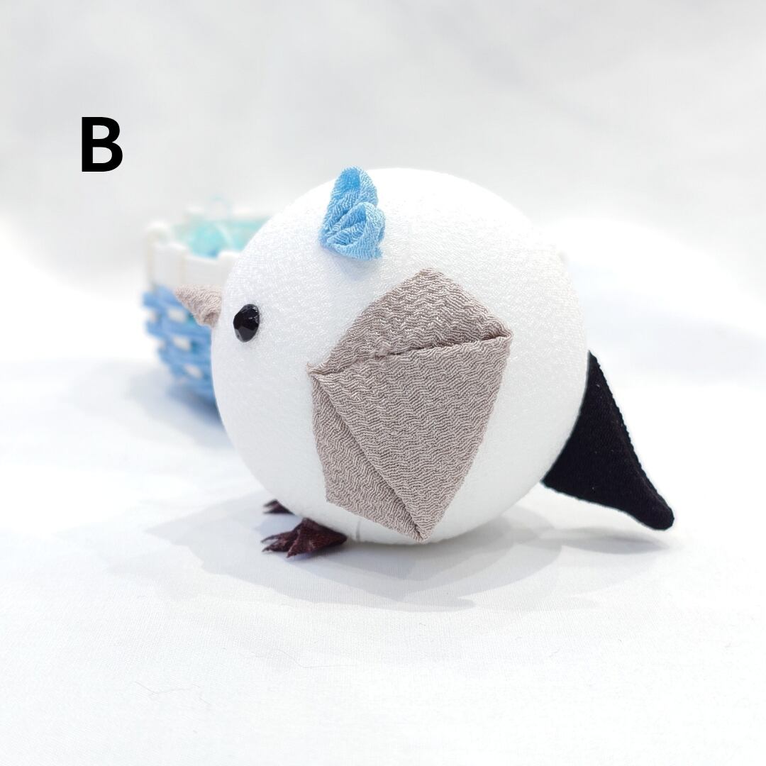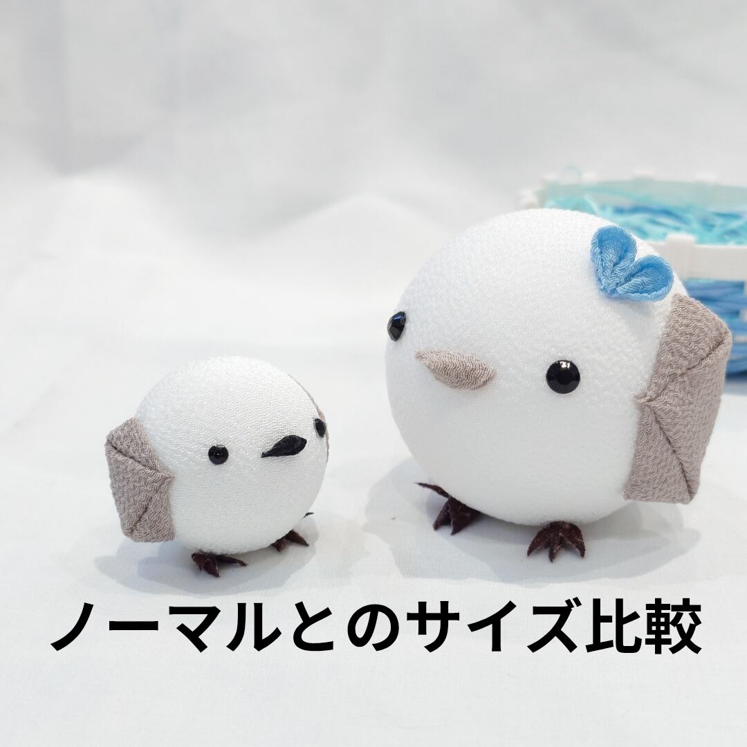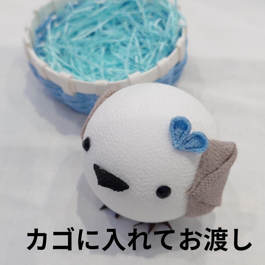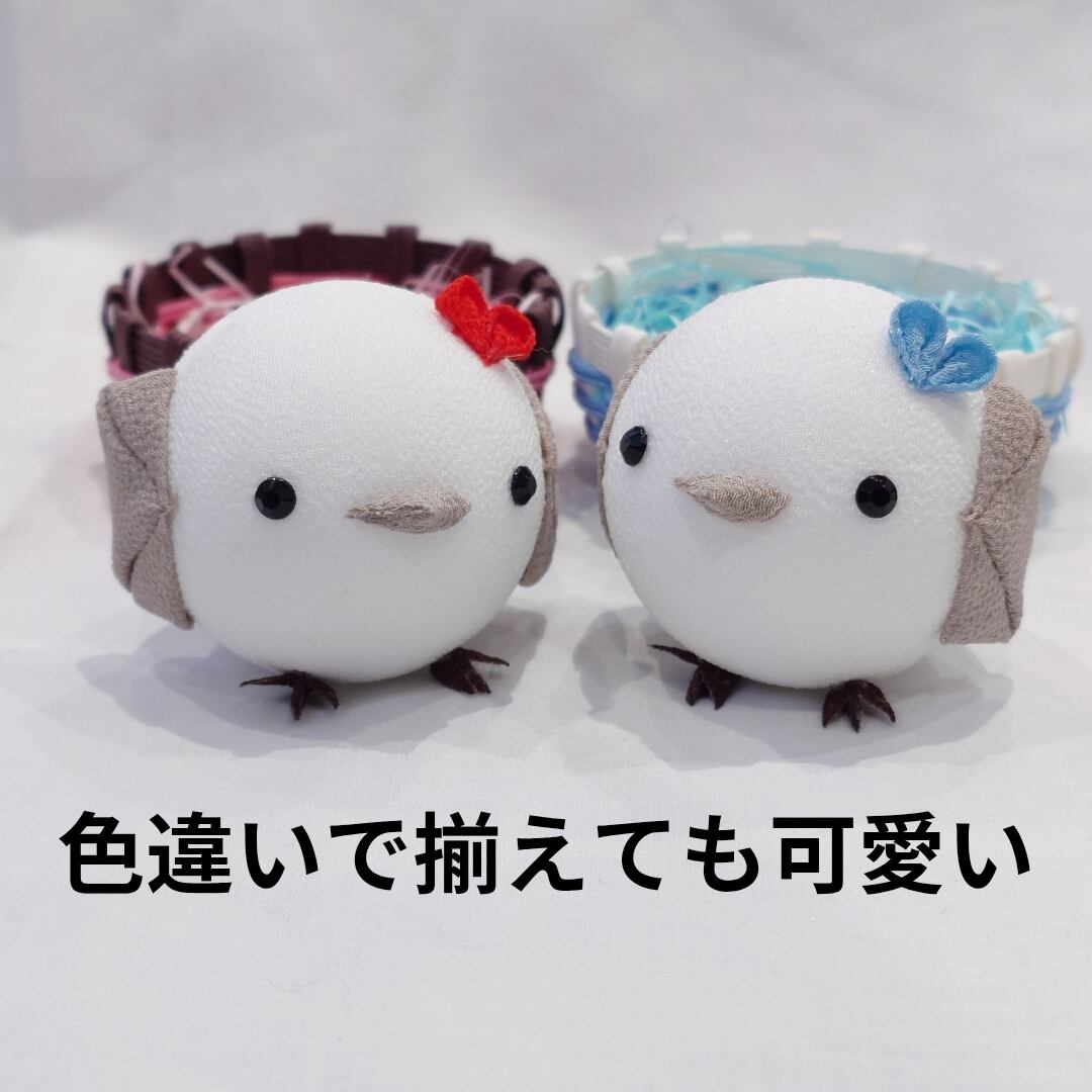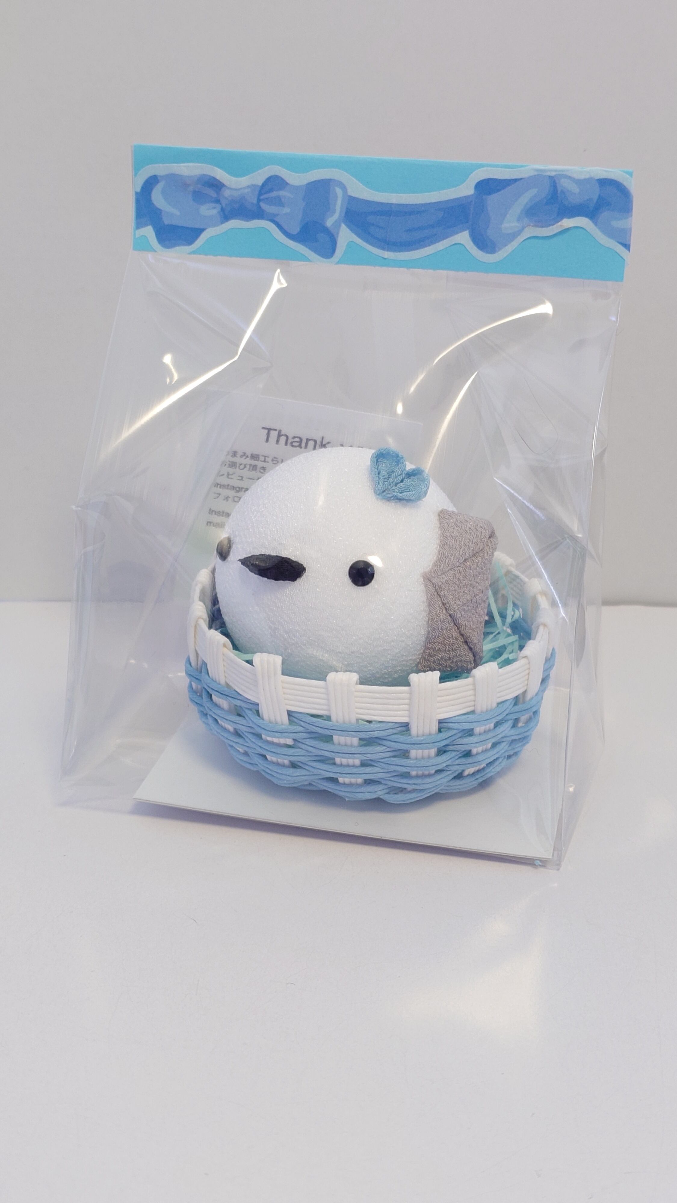 クチバシ、羽根、尻尾、足がつまみ細工でできています。