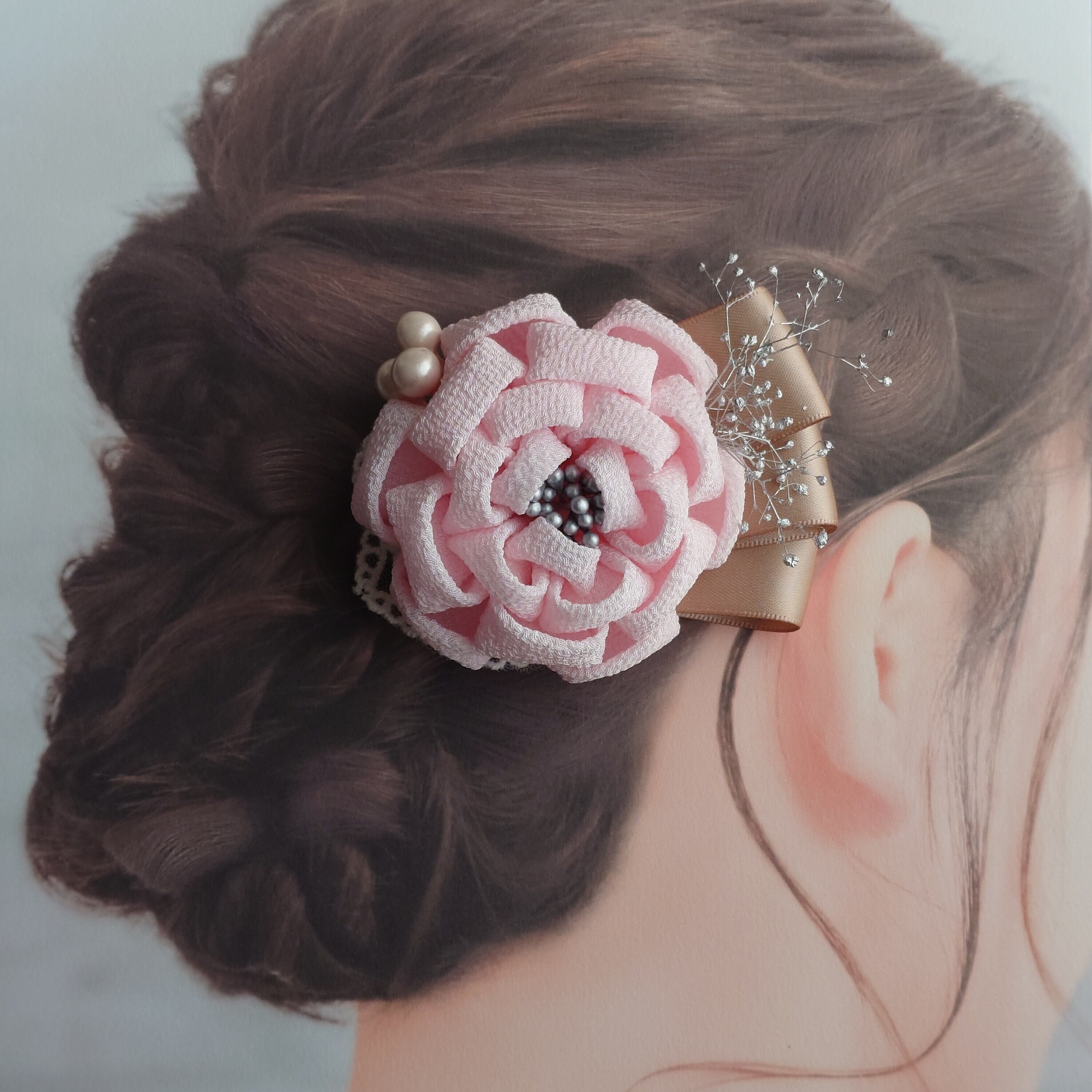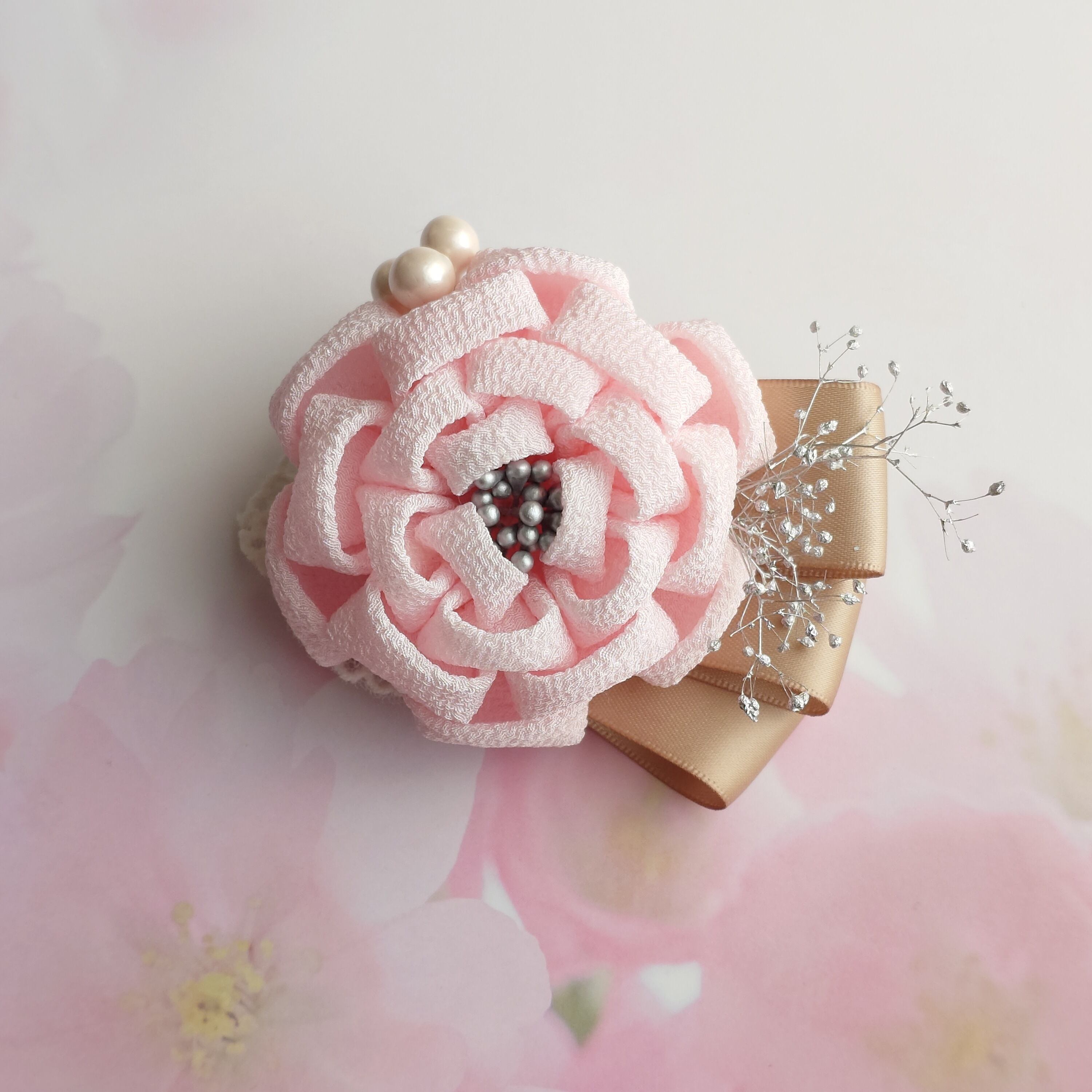 つまみ細工 コサージュ 薄ピンク