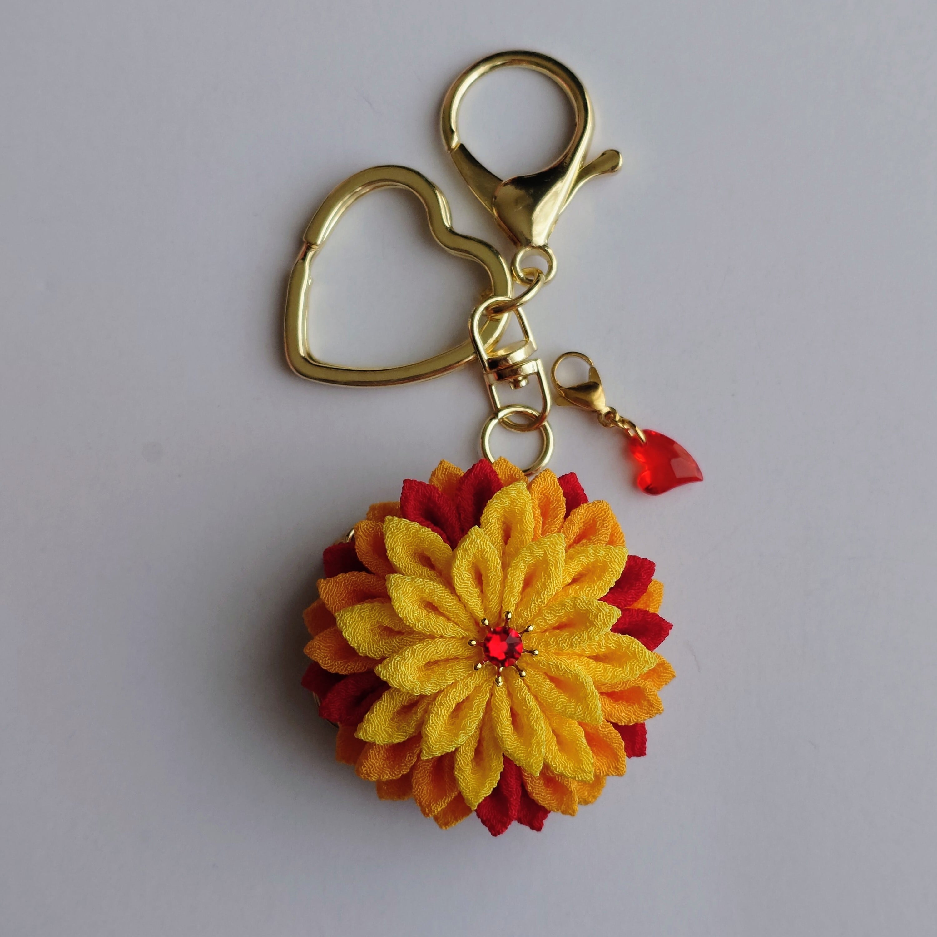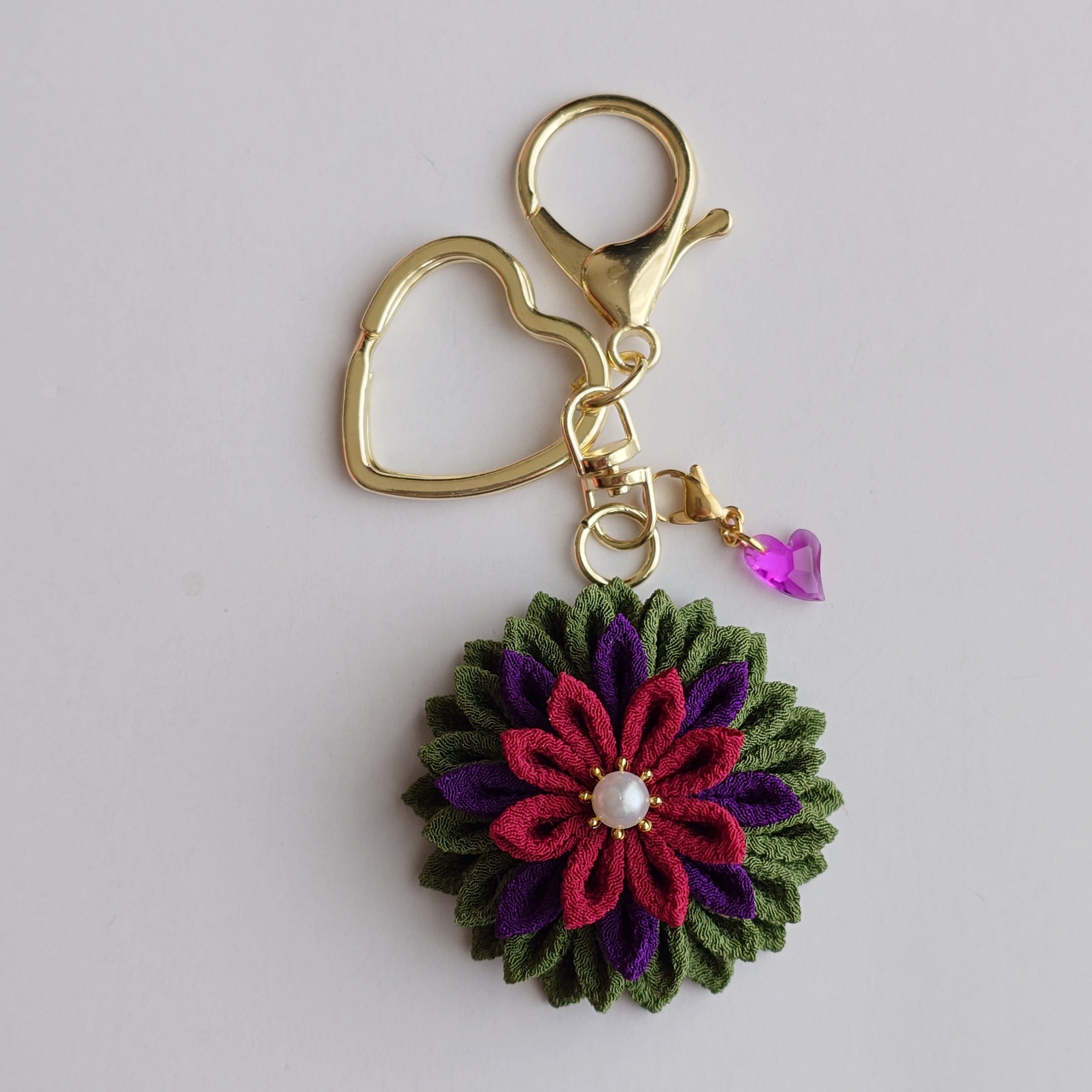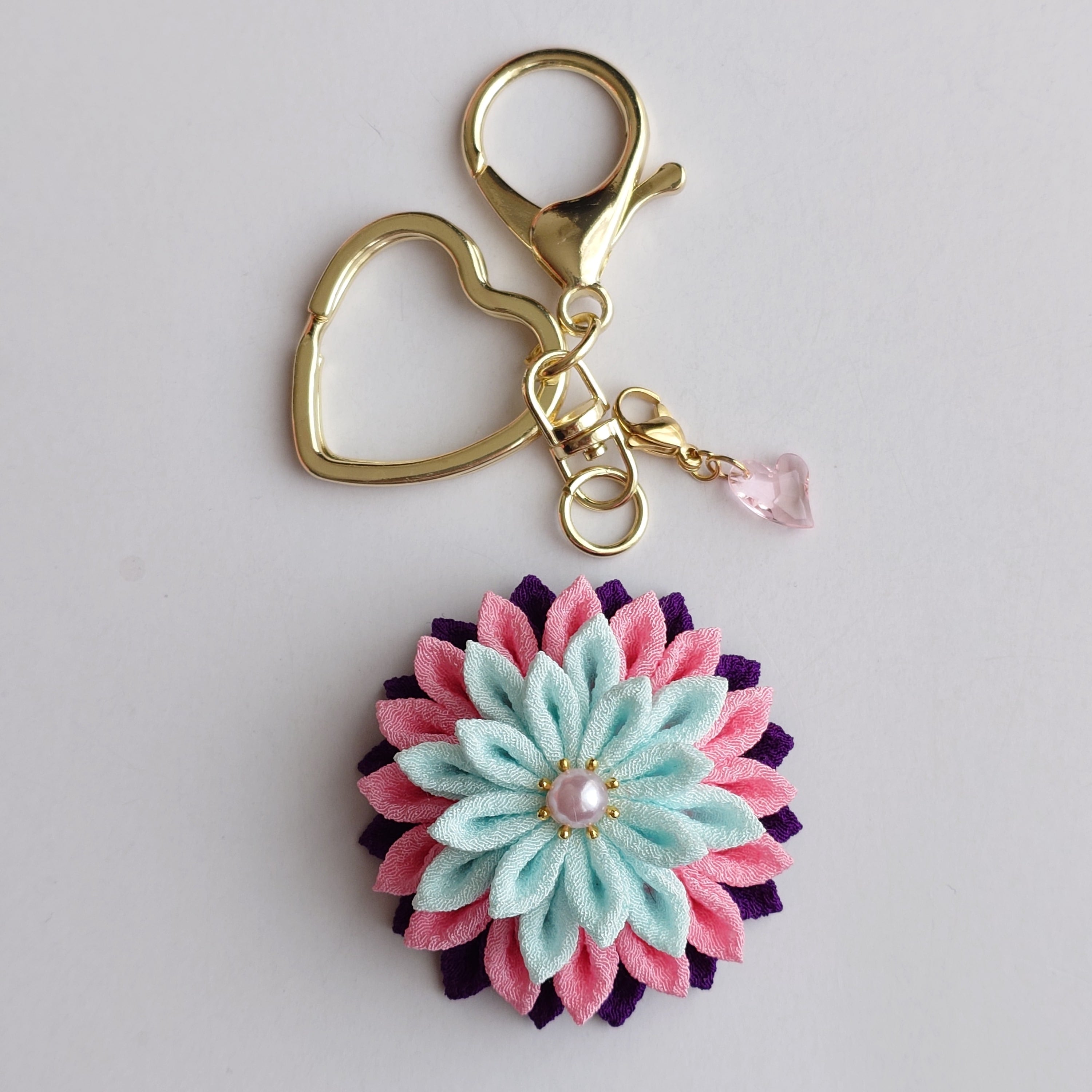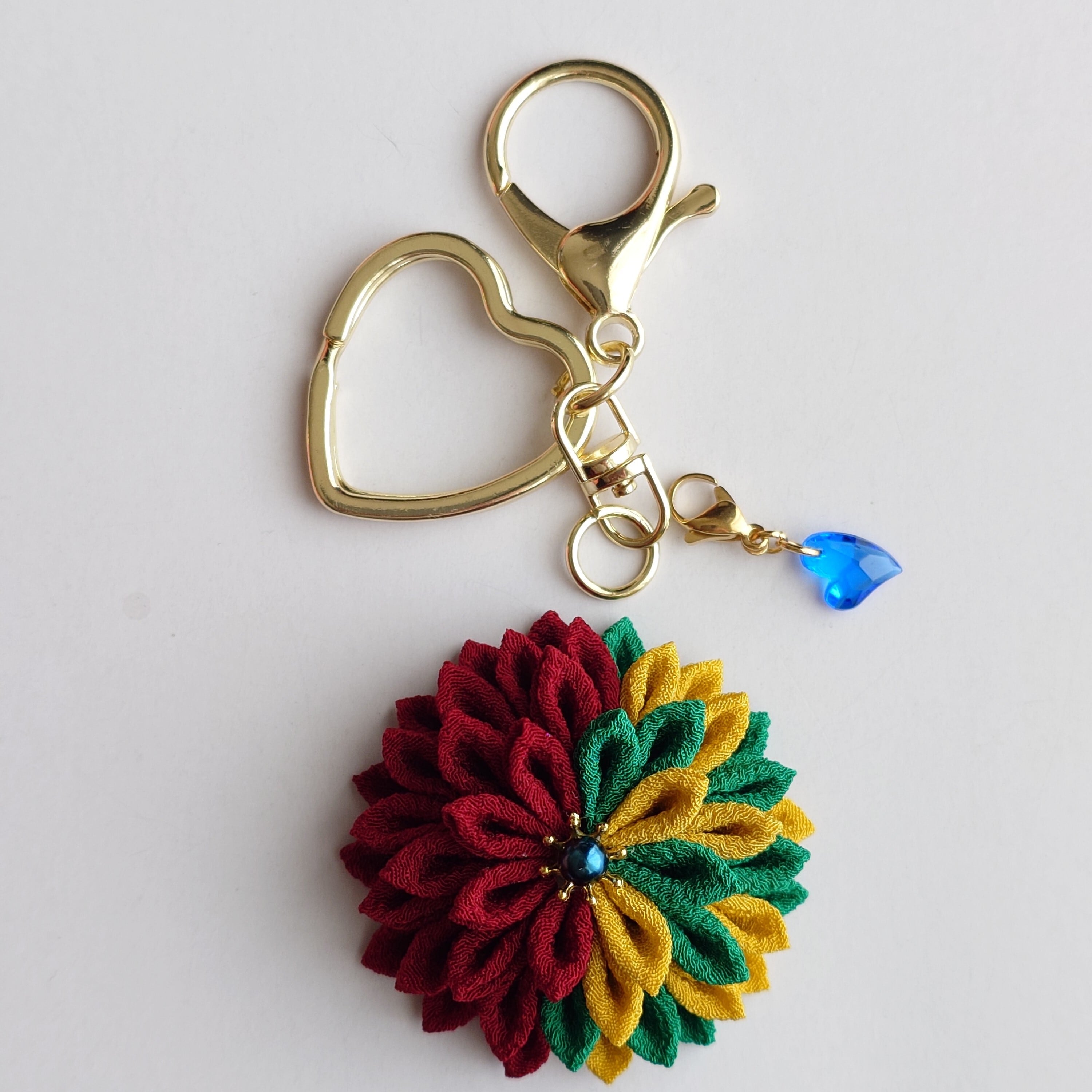 つまみ細工で作ったキーホルダーです。