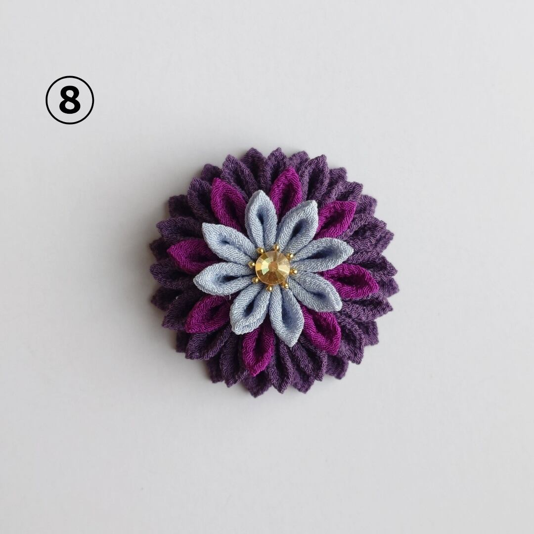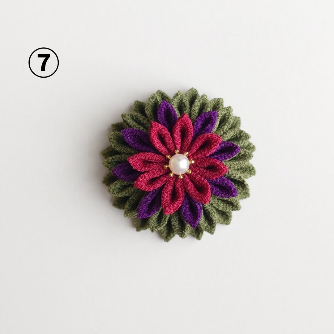 つまみ細工は、水濡れや強い力を加えることにより変形・破損の恐れがありますので、お取り扱いにはお気をつけ下さい。