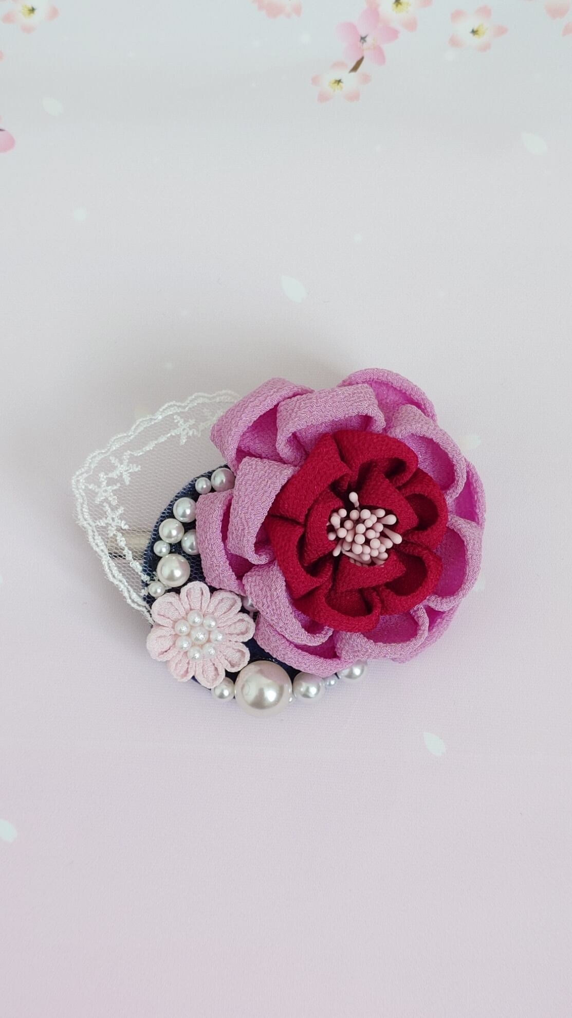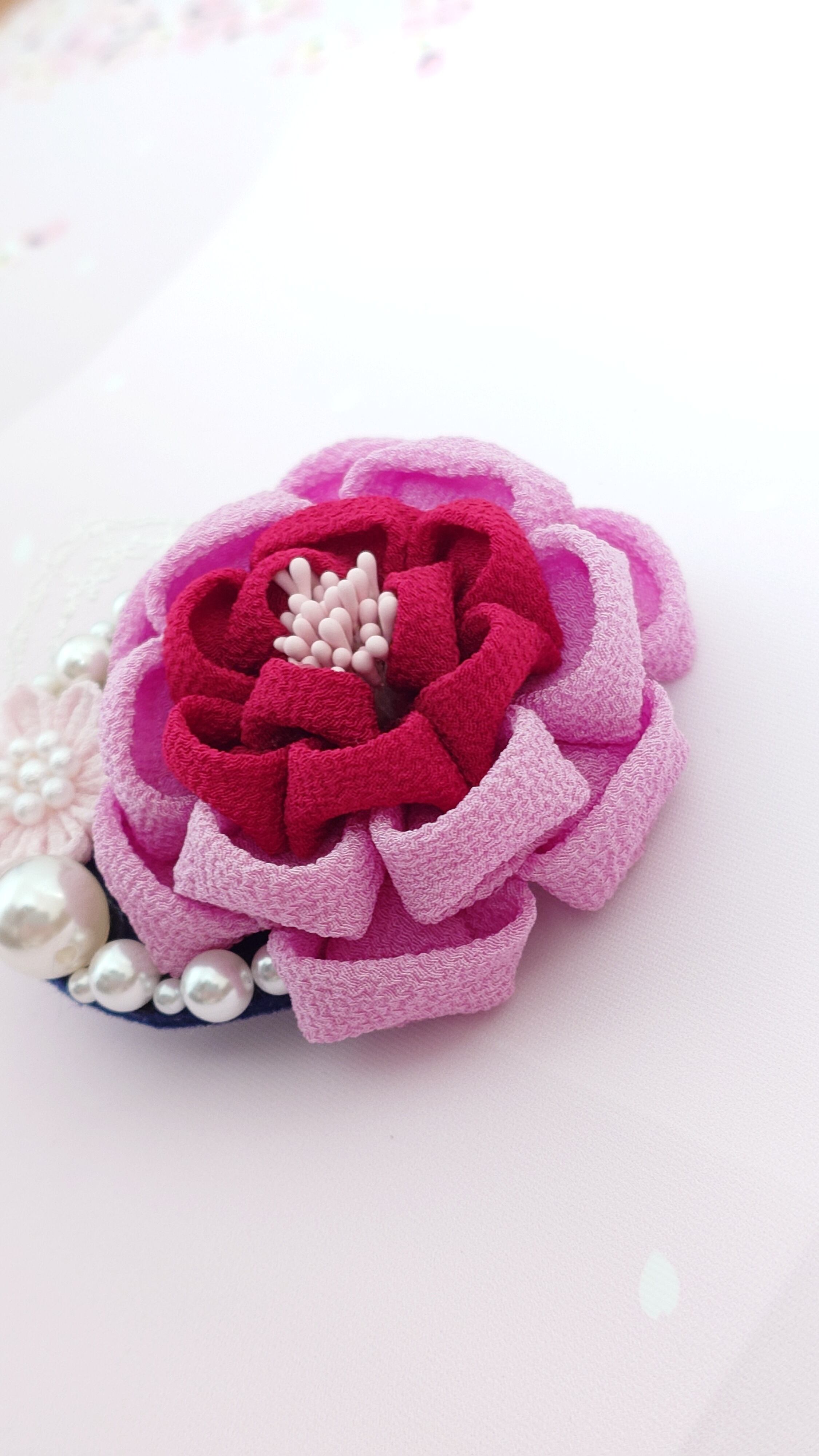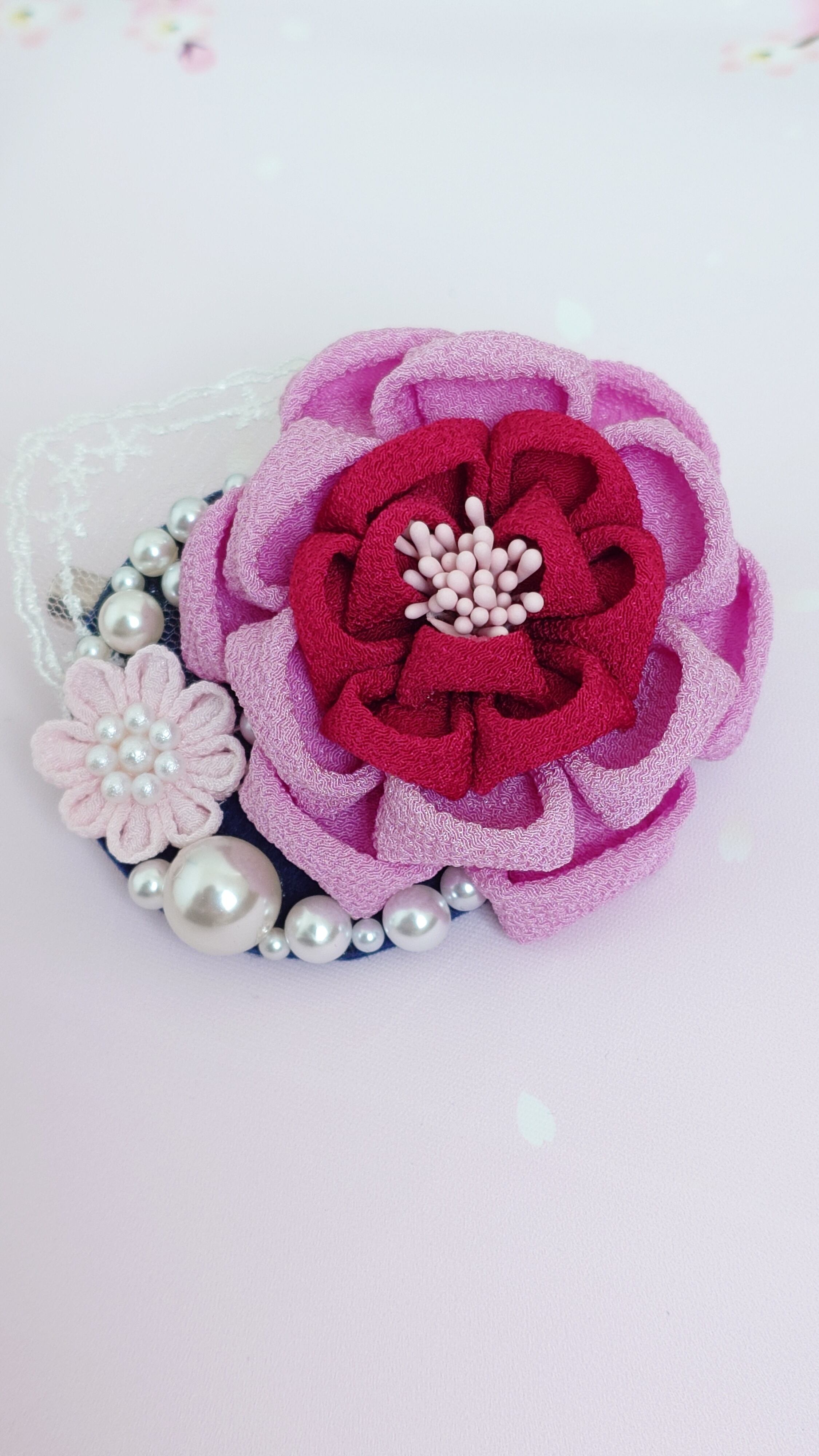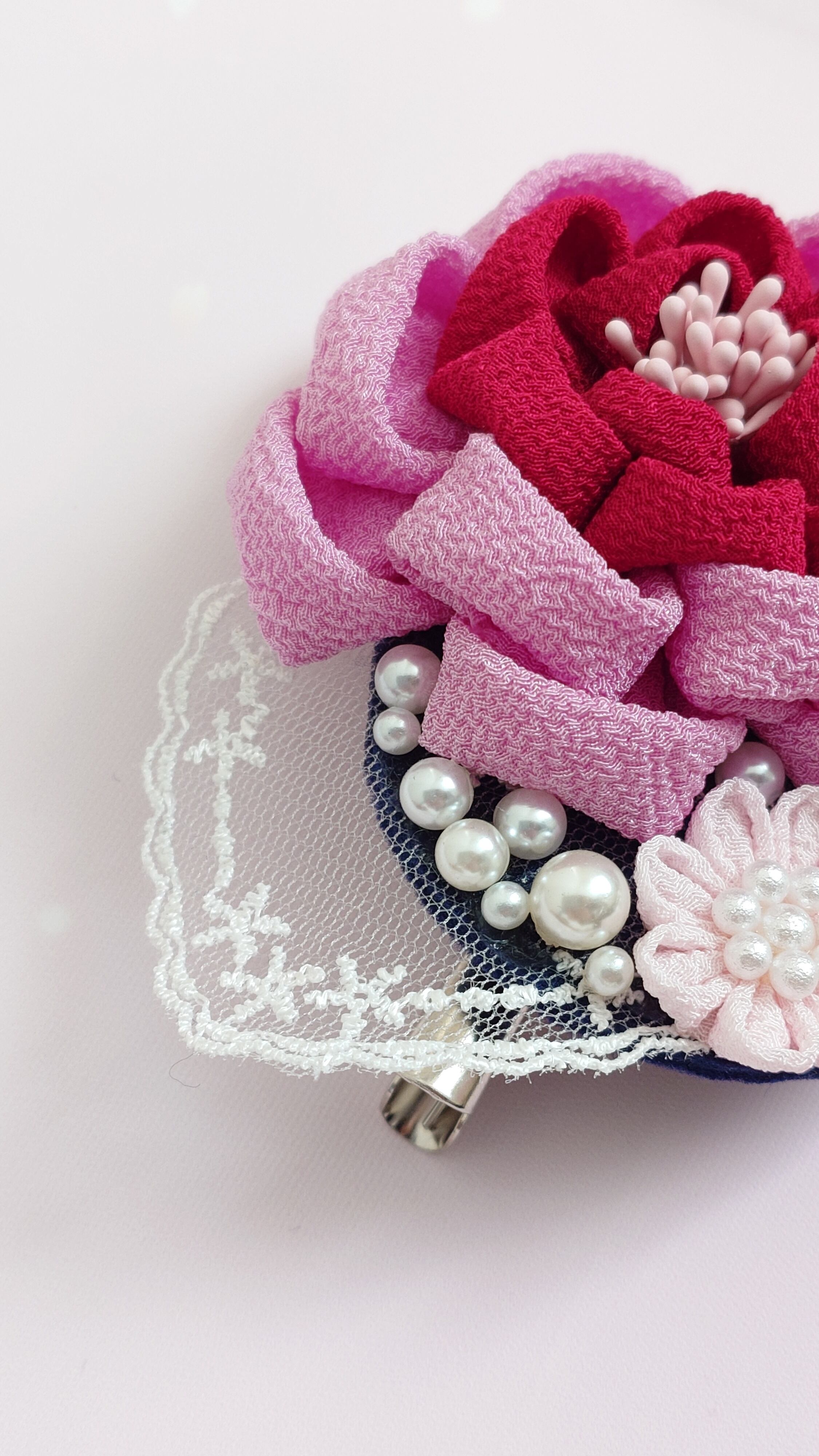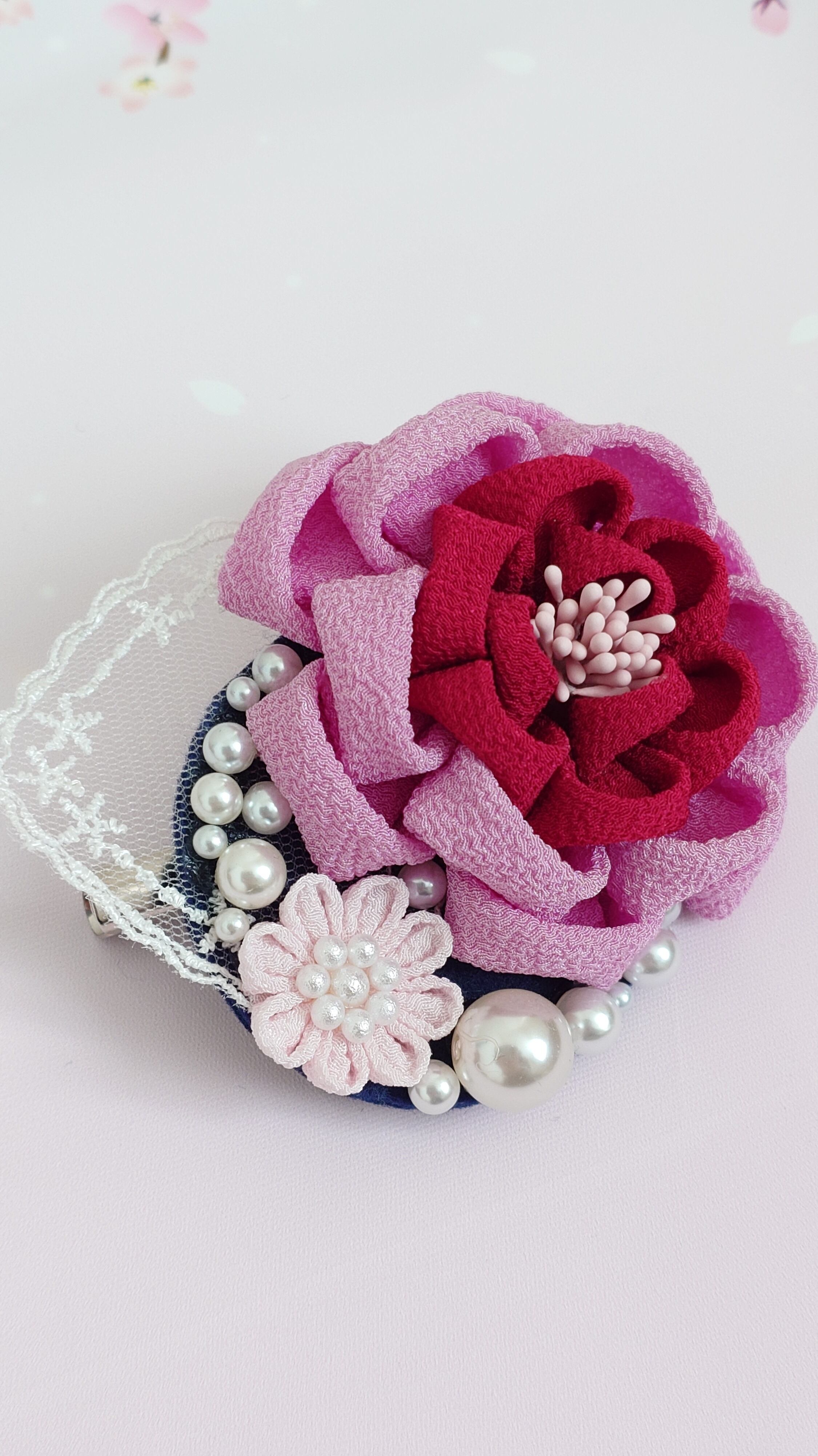 つまみ細工 コサージュ ピンク 2way