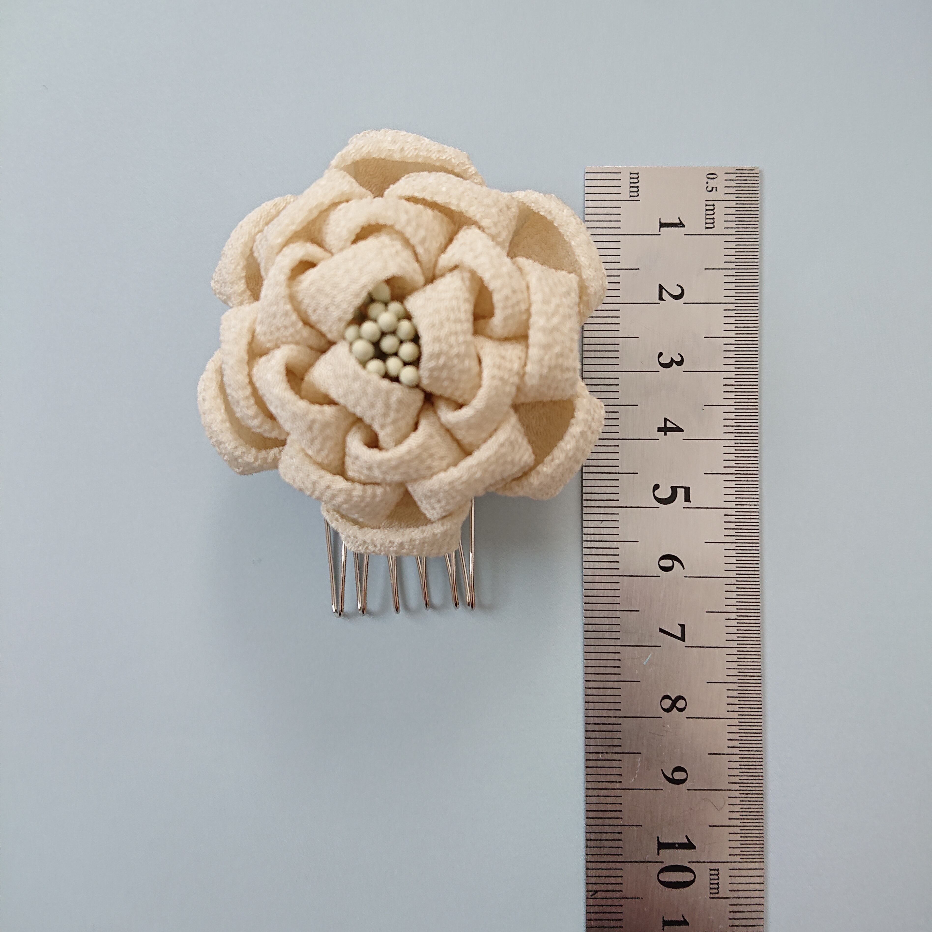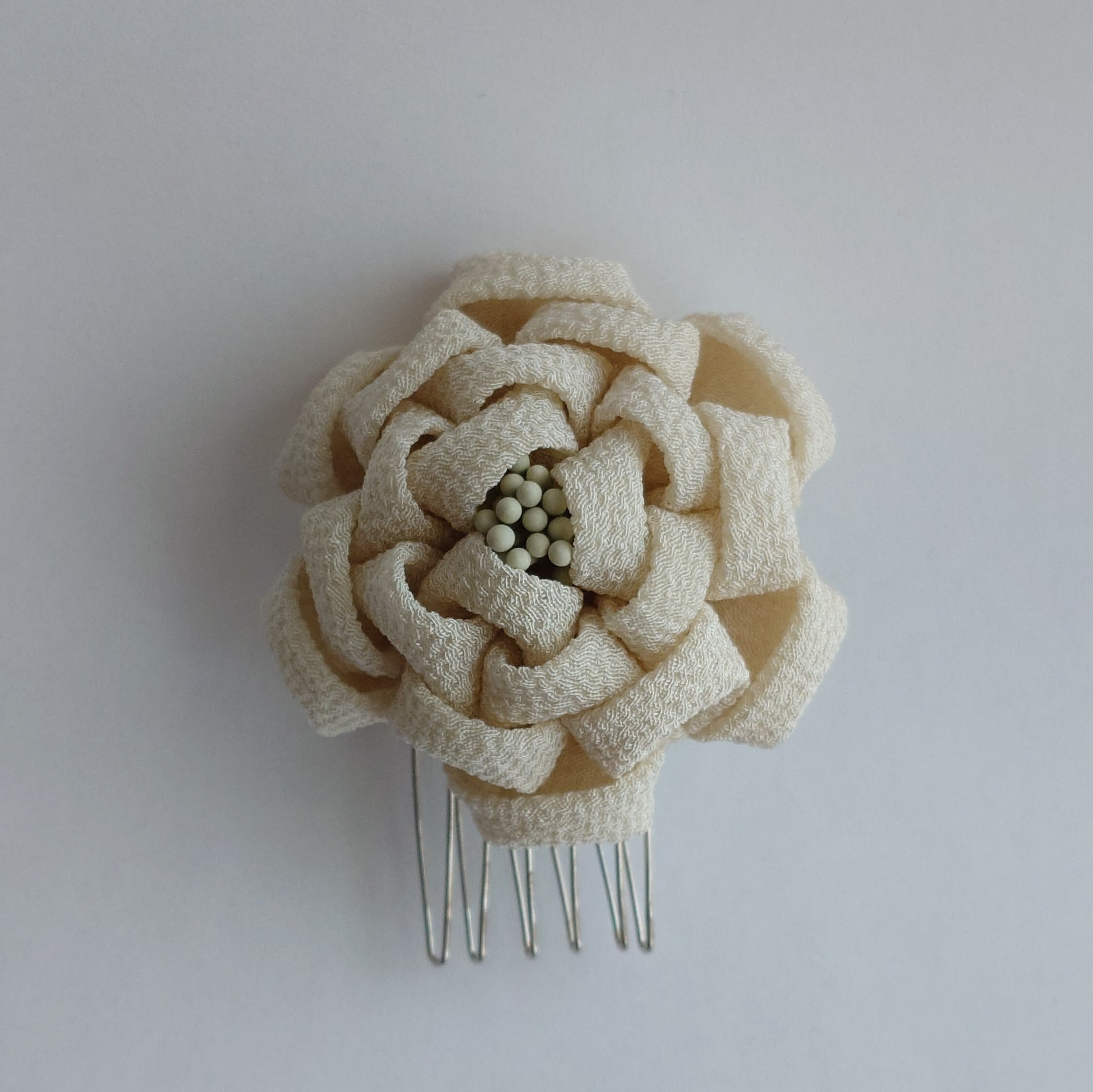 つまみ細工は、水濡れや強い力を加えることにより変形・破損の恐れがありますので、お取り扱いにはお気をつけ下さい。