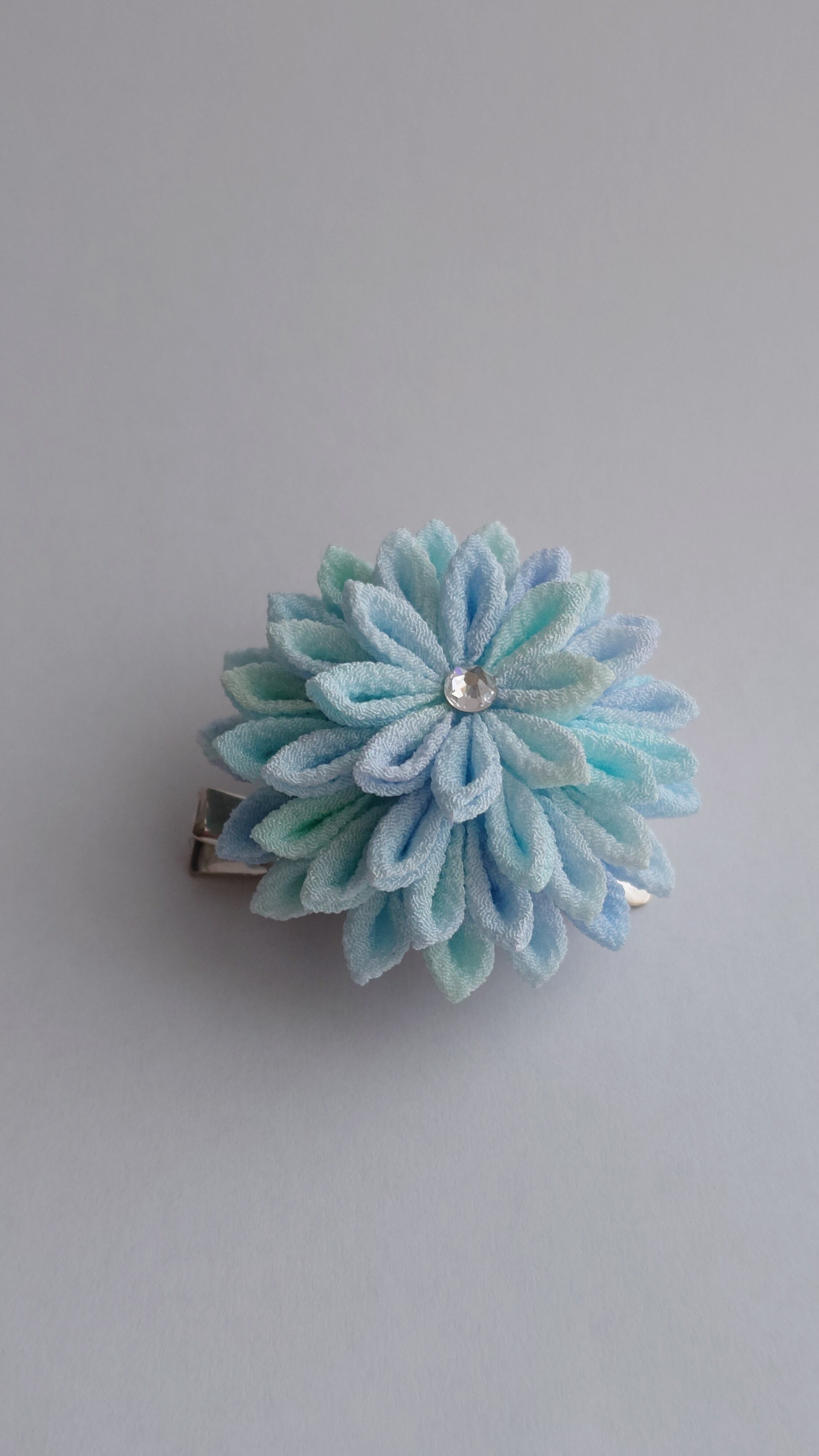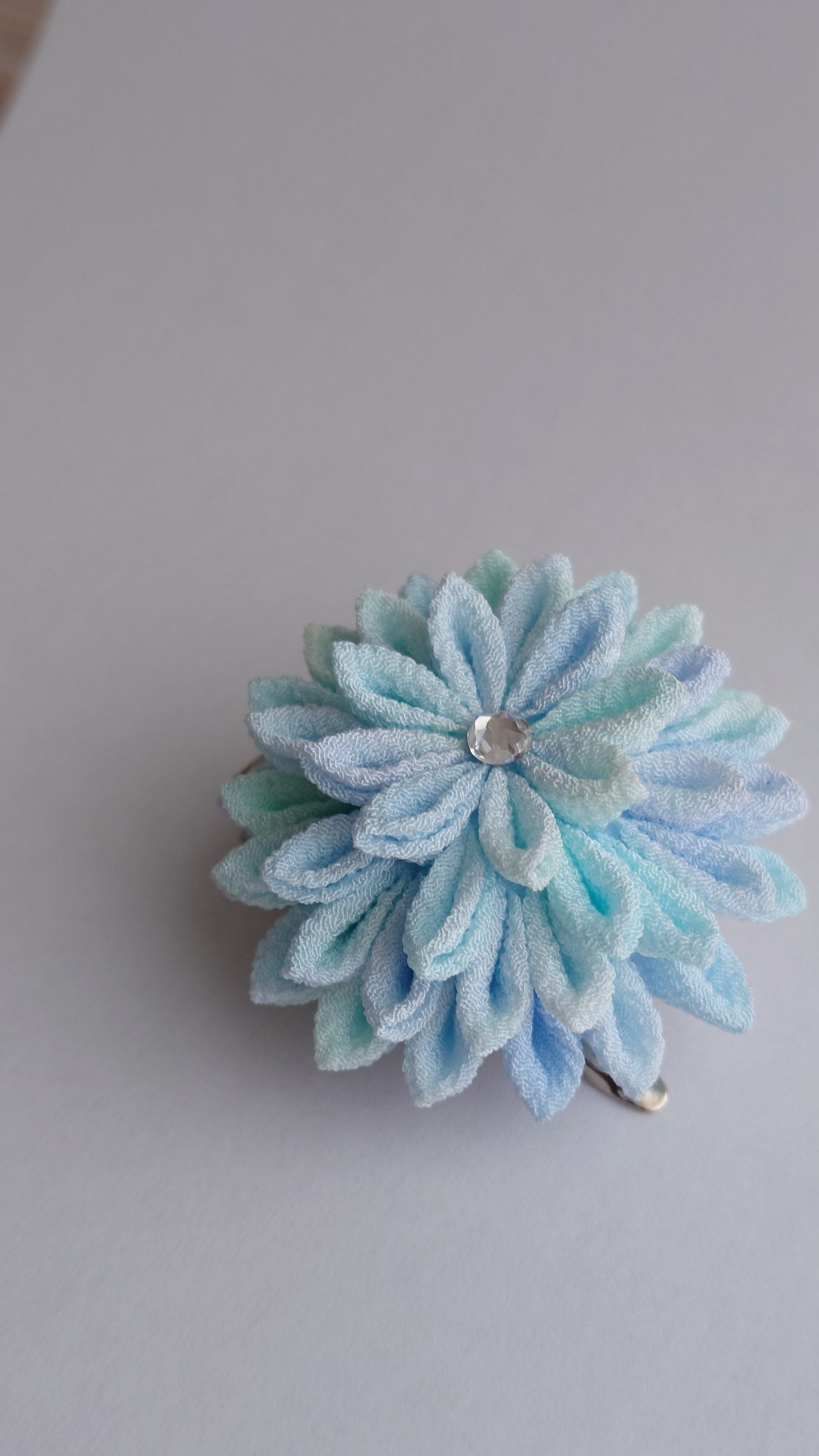 つまみ細工 半くす2wayブローチ ぼかし水色