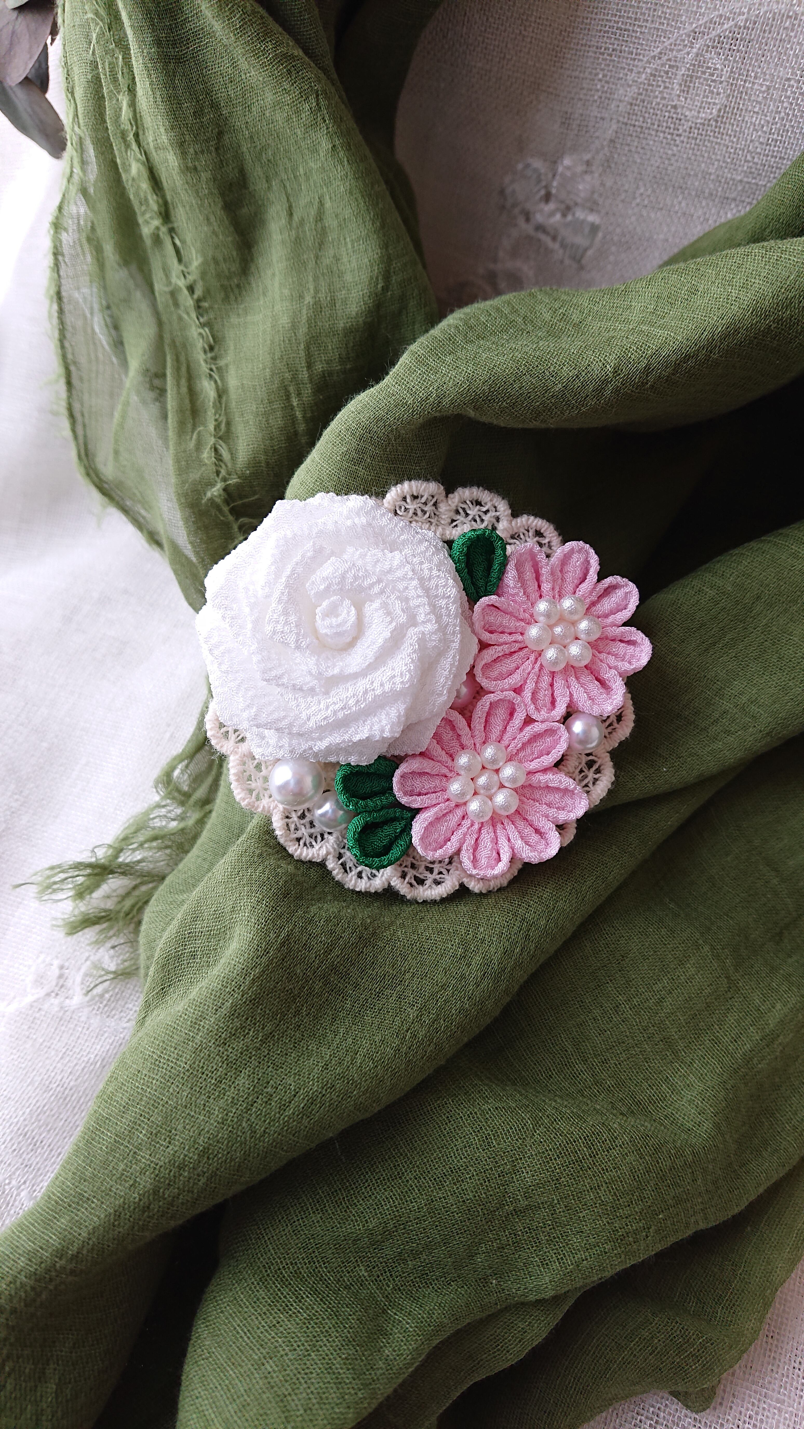つまみ細工 2wayブローチ ブーケ クリップ ブローチ