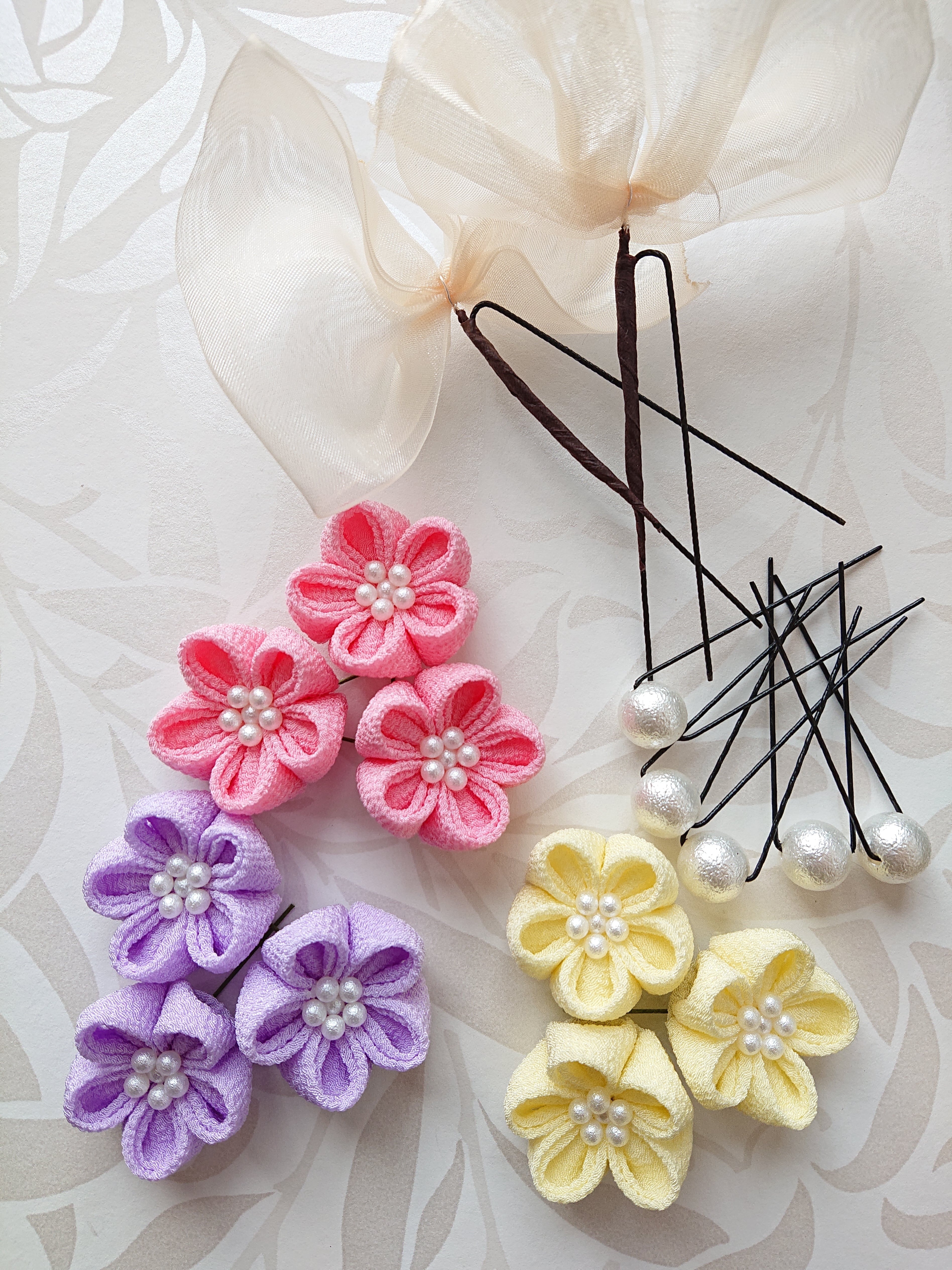 つまみ細工 髪飾りセット 小花 カラフル 成人式 和装 着物 卒業式