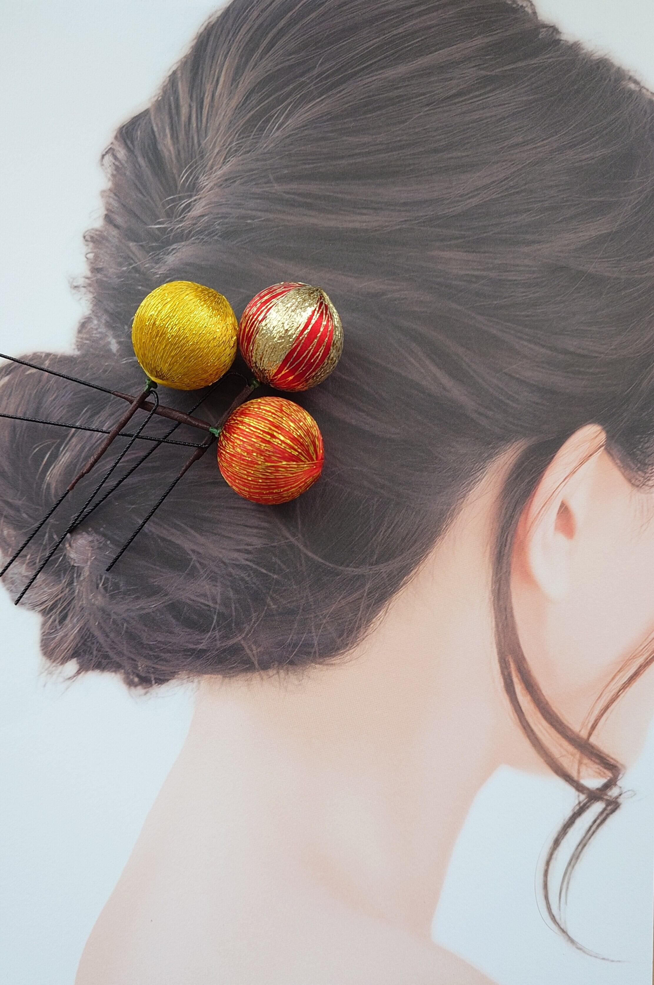秋のお祭りにも 和玉髪飾り 5本セット 赤系① かんざし 成人式 着物 和装 前撮り