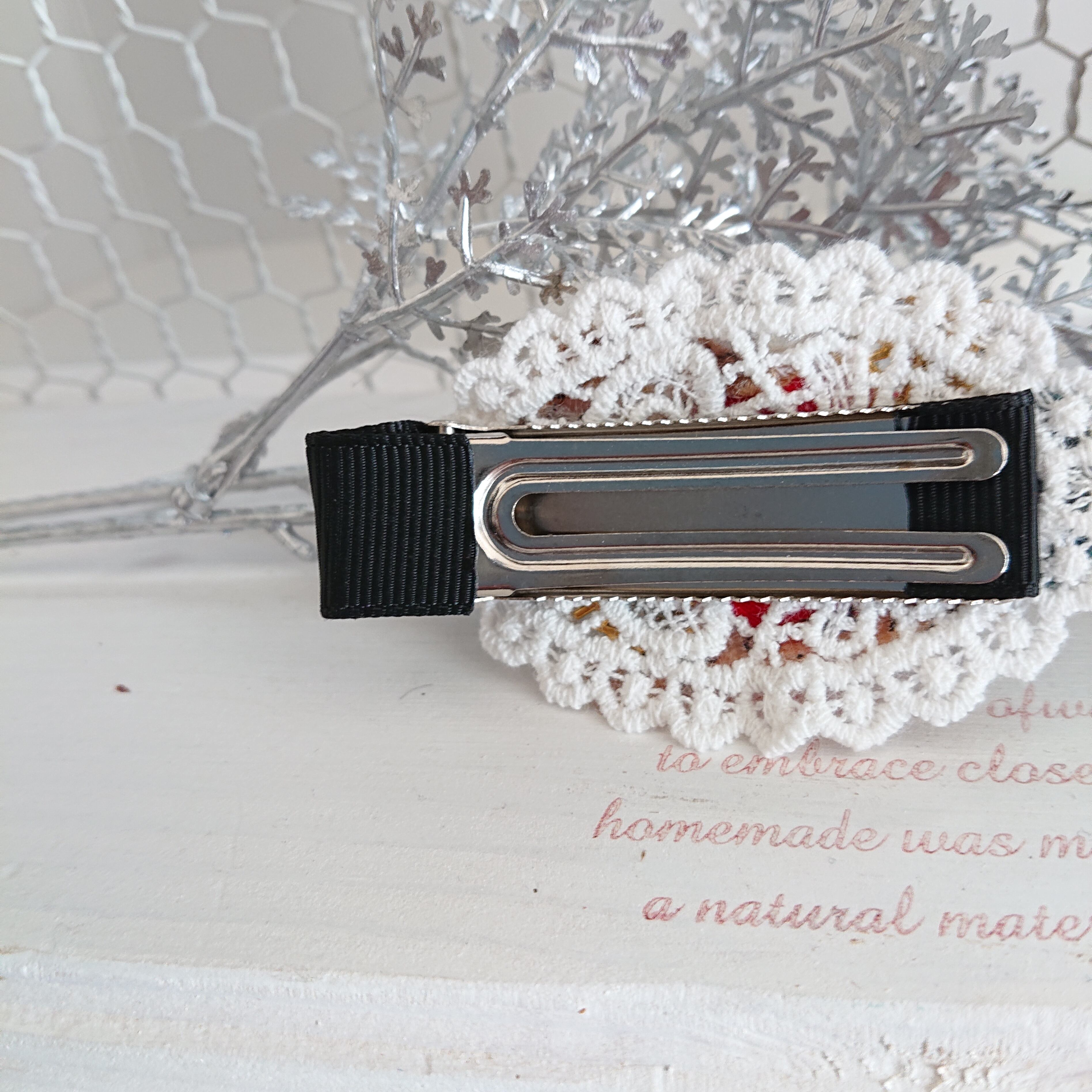 クリスマスをイメージした色味のヘアクリップです。