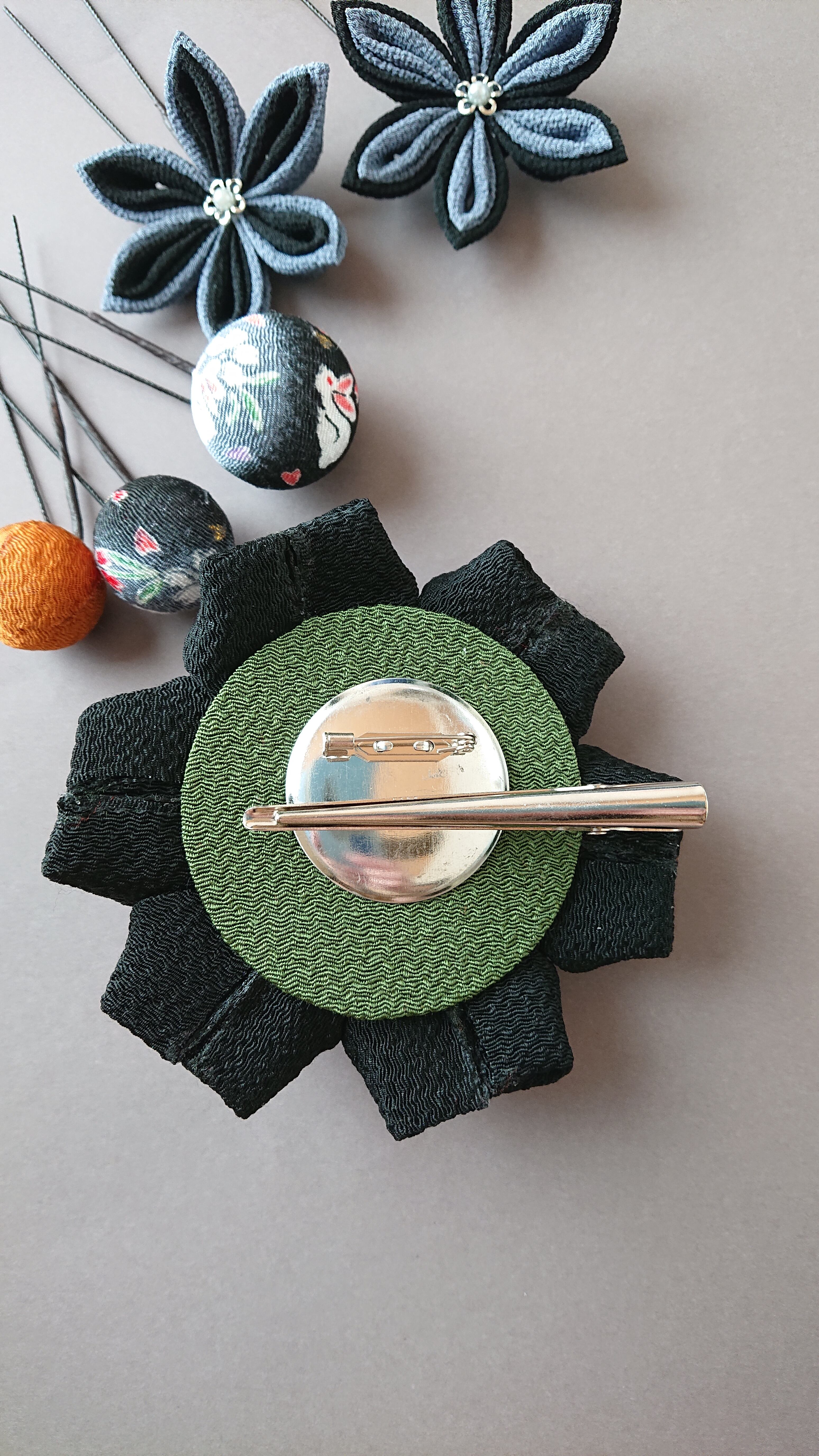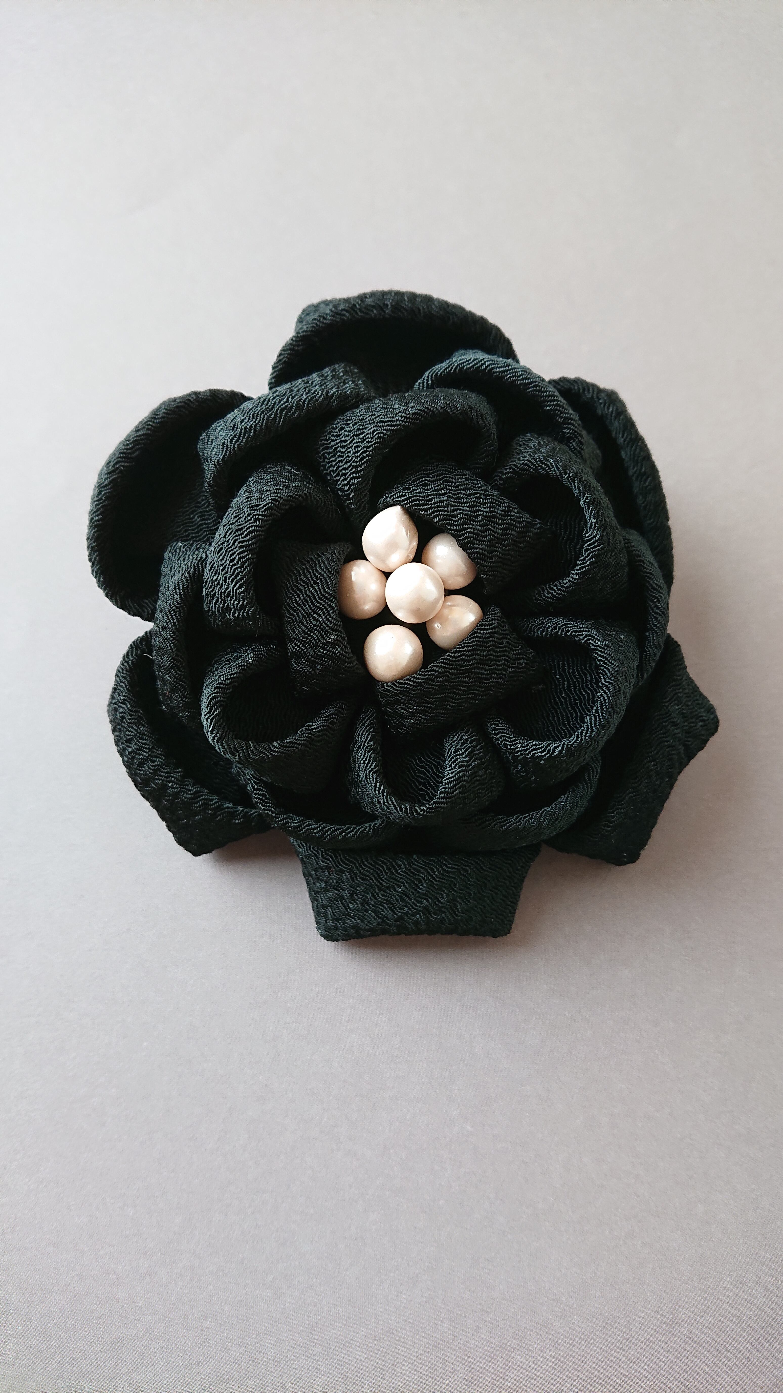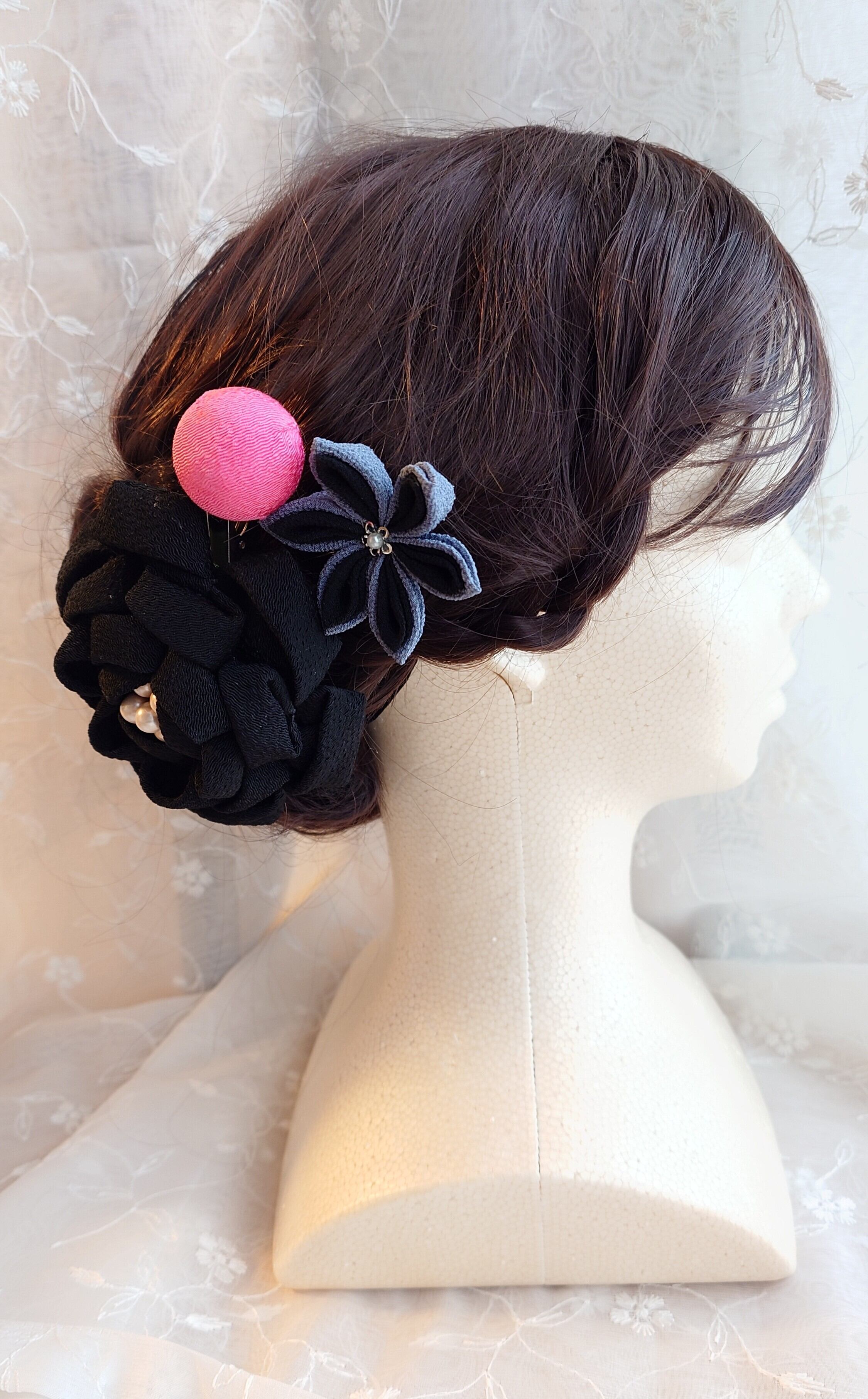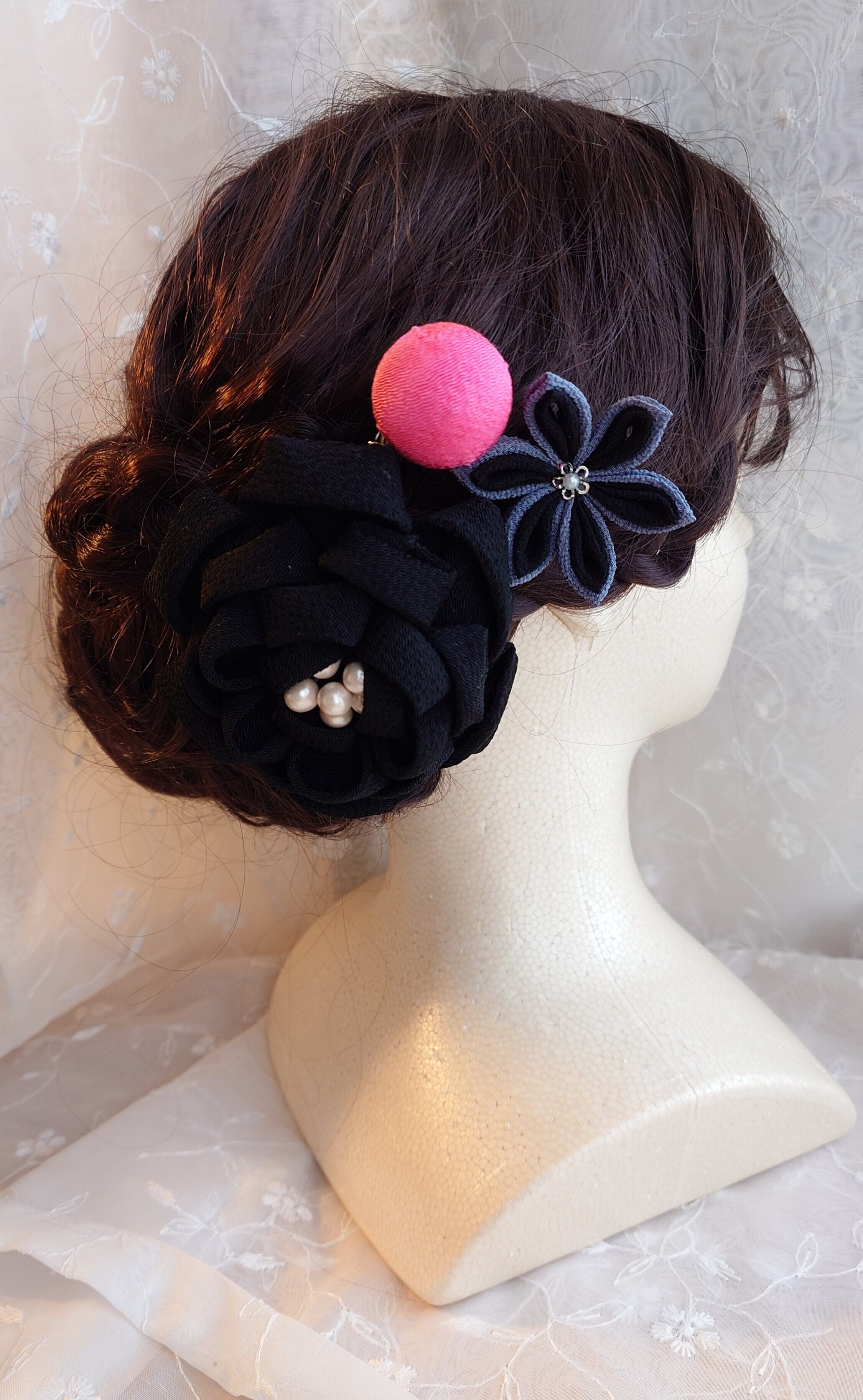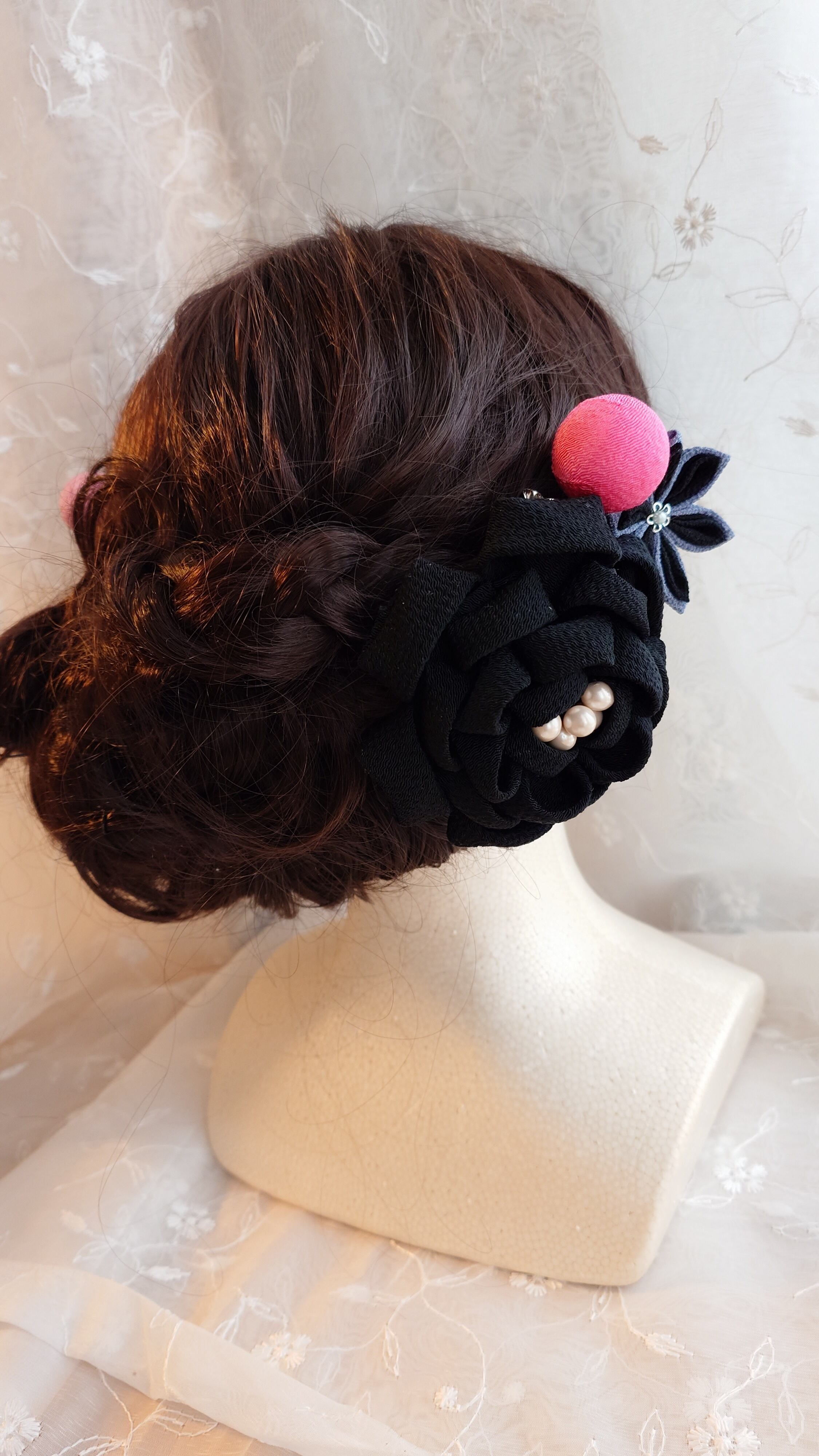 つまみ細工 髪飾りセット 大椿 黒 成人式 和装 着物 卒業式