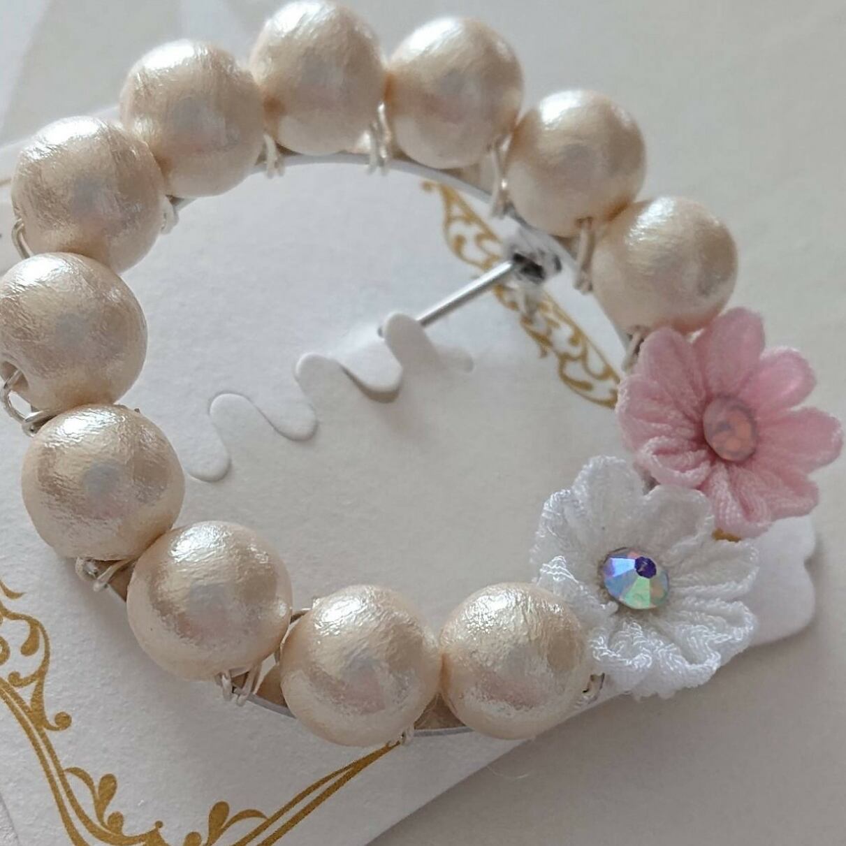 レーヨン、コットンパール、真鍮、ガラスストーン