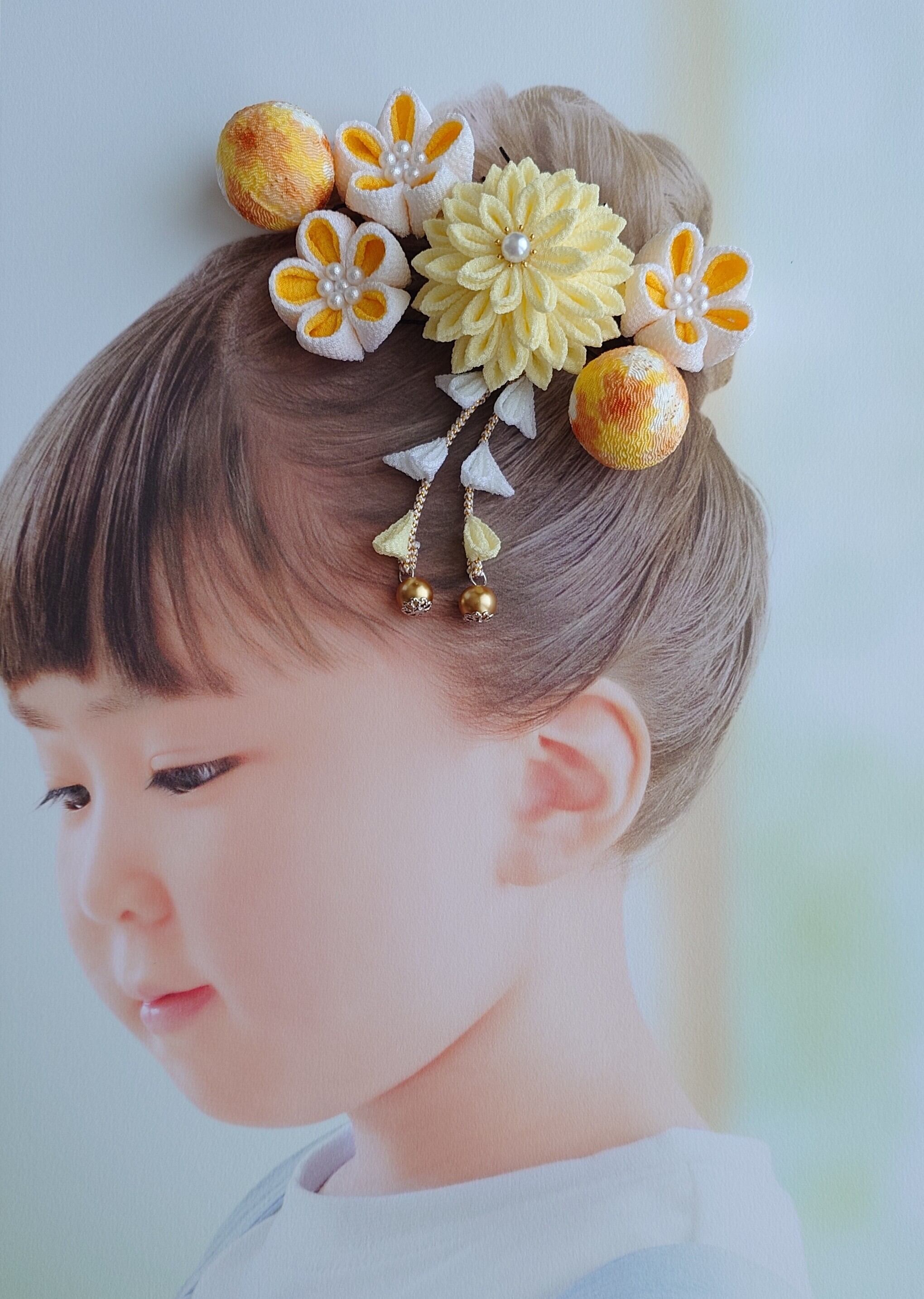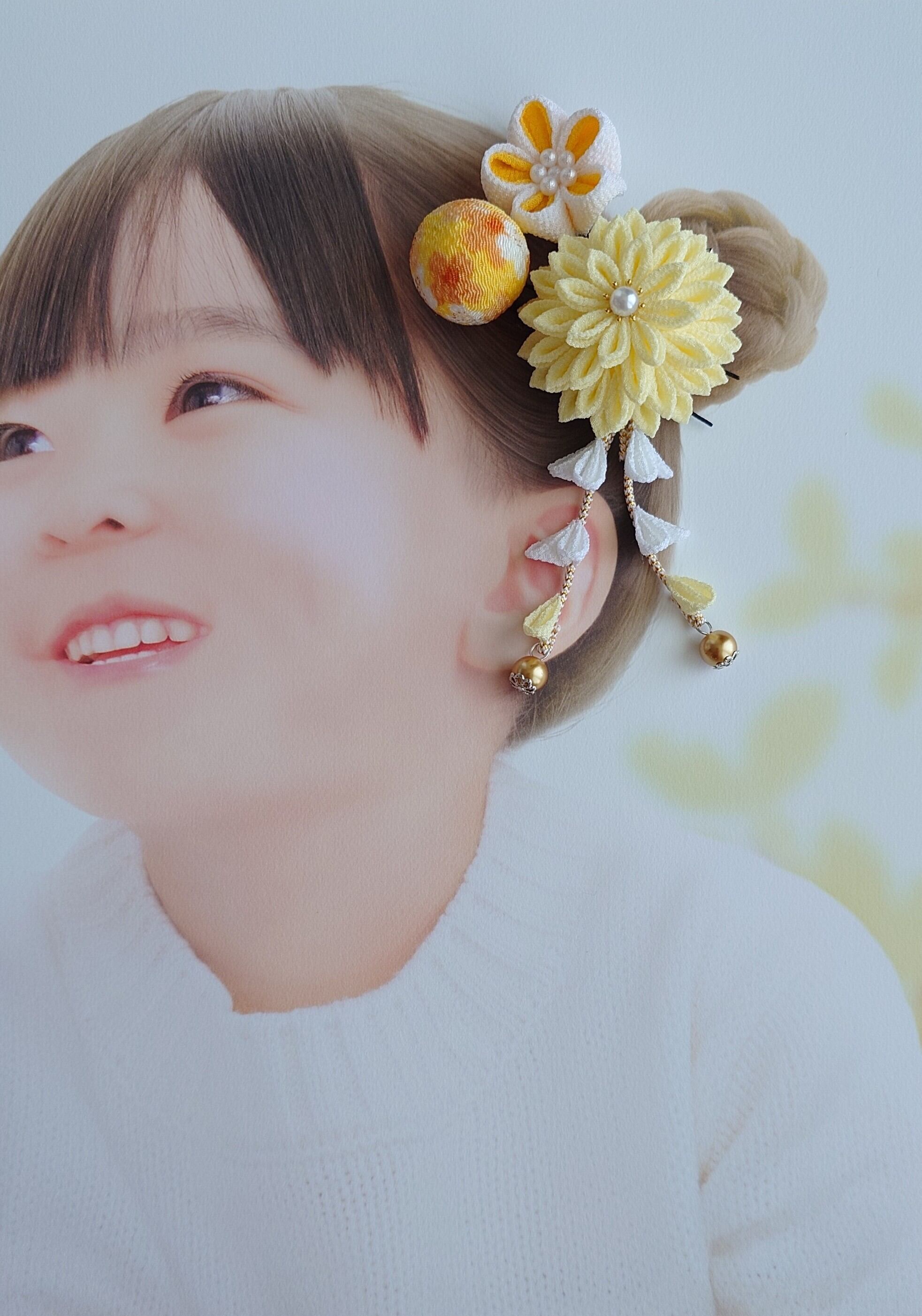 元気なイエローカラー 七五三髪飾り つまみ細工 小花 七五三 和装 着物