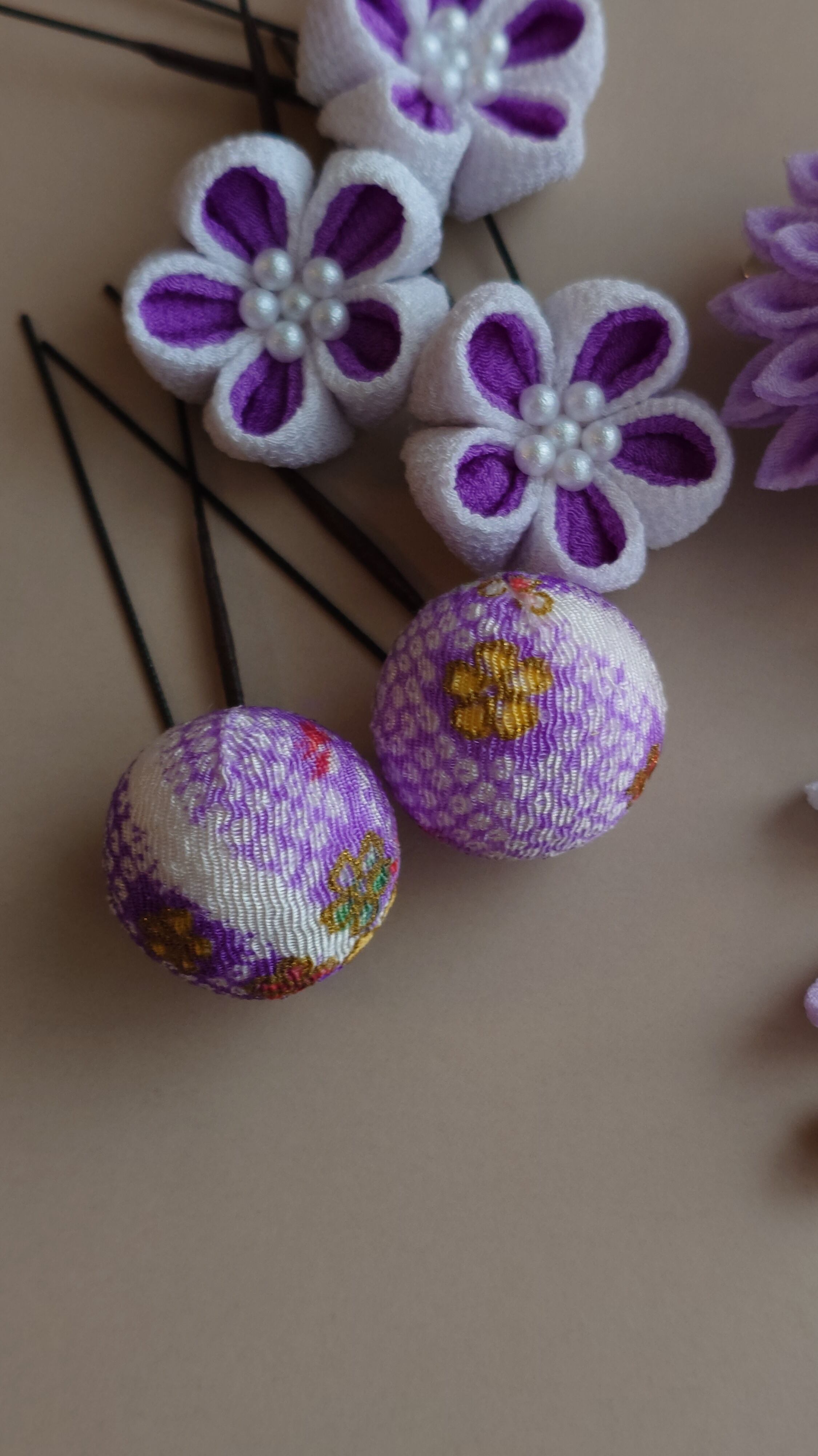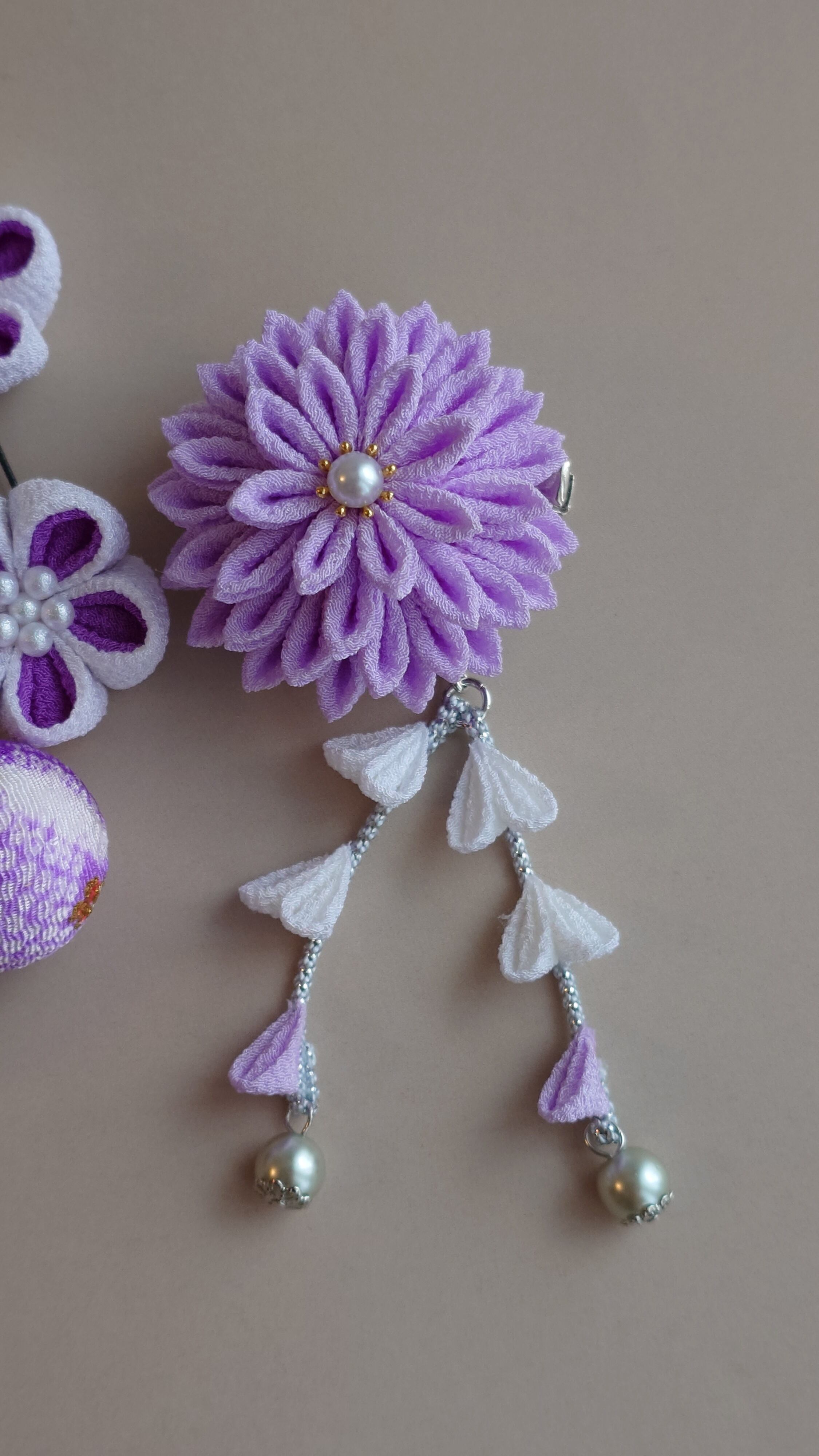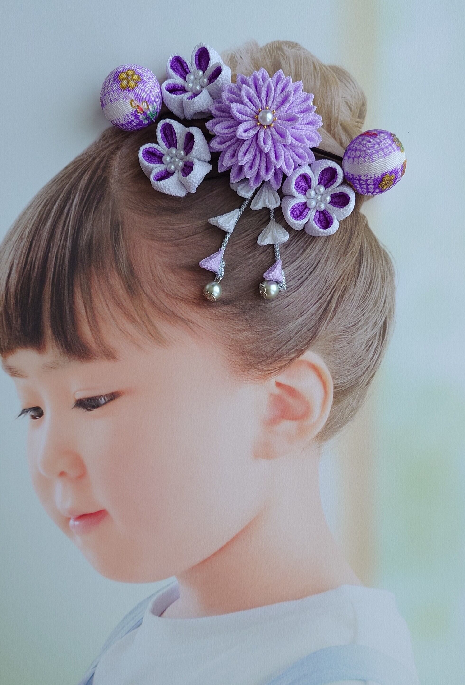 ゆめかわ好きな紫カラー 七五三髪飾り つまみ細工 小花 七五三 和装 着物