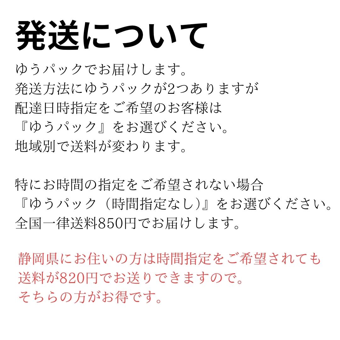 静岡県にお住いの方に関しては、どちらを選んでいただいても送料は同じです。時間指定の希望ありなしでお選びください。
